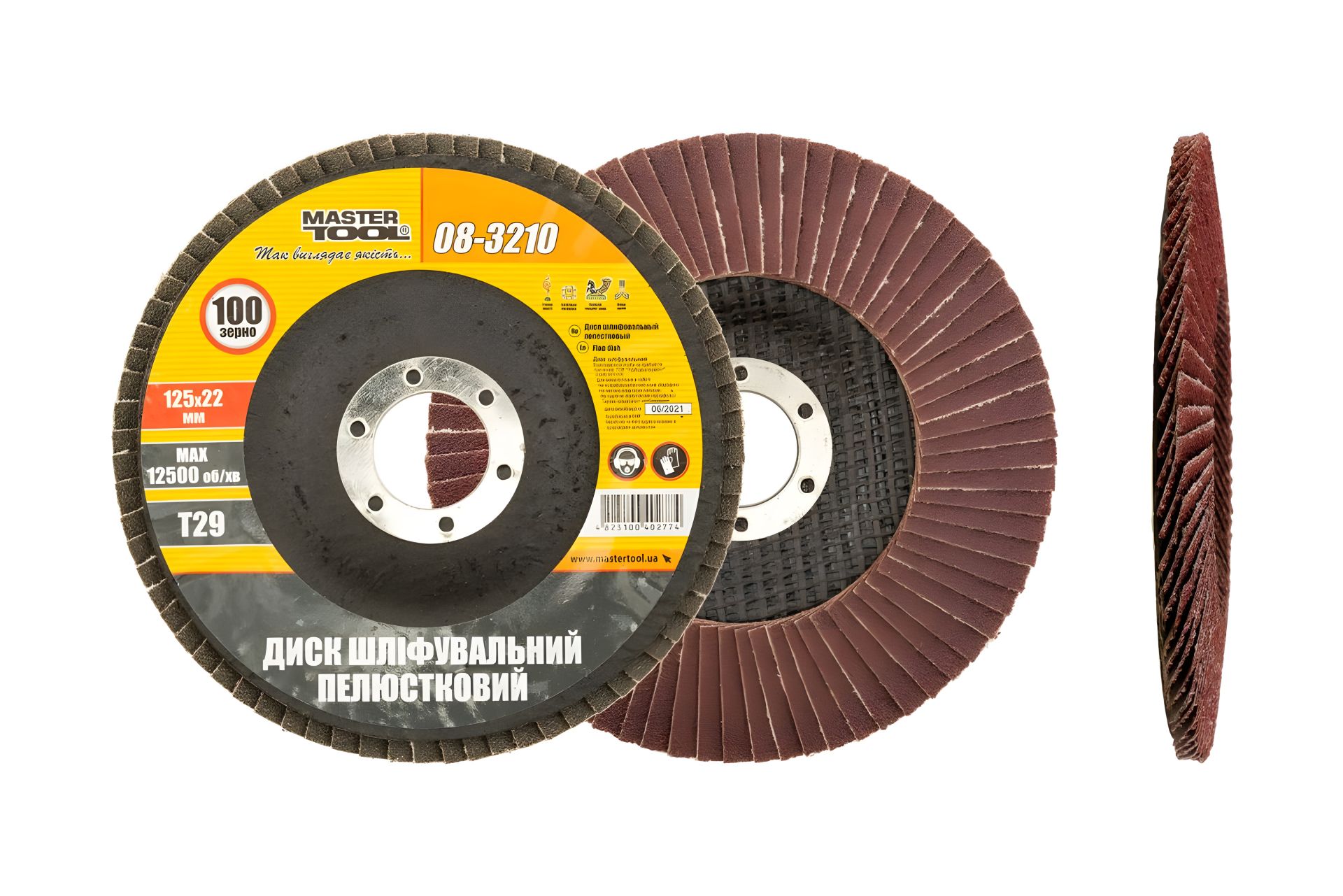 Шліфувальний диск пелюстковий конусний Т29 зерно 100 125х22 мм MASTERTOOL 08-3210