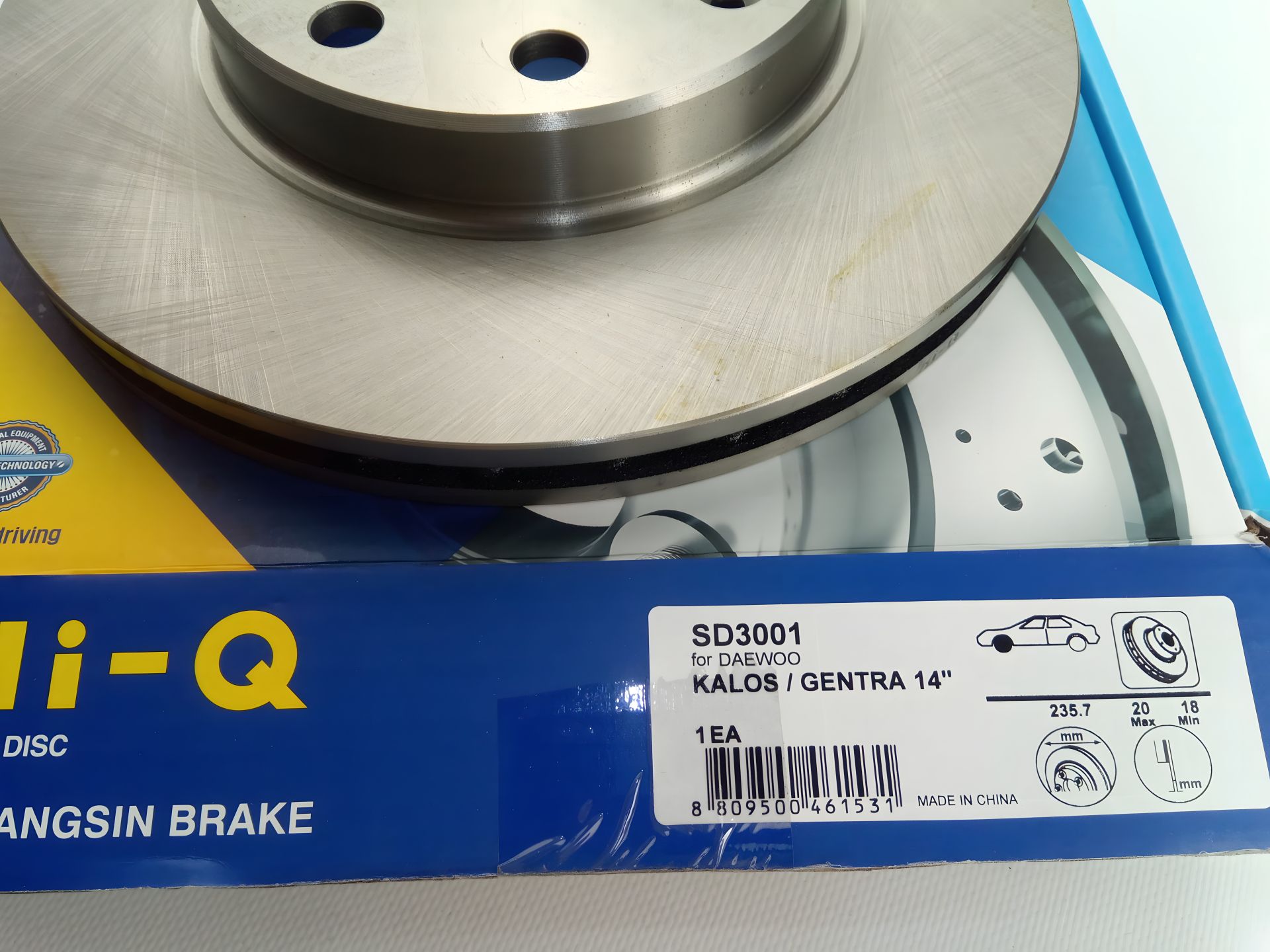 Диск гальмівний Aveo 13", Hi-Q (SD3001) 1 шт Вага [г]: 3800 Вид деталі: Диск гальмівний Діаметр фаски 1 [мм]: 100 Діаметр центрування [мм]: 59 Мінімальна товщина [мм]: 18 мм]: 235,7 Загальна висота [мм]: 41 Розташування: Передній міст Сторона встановлення: Зліва, Праворуч Тип гальмівного диска: Вентильований Товщина гальмівного диска [мм]: 20 Кількість отворів: 4