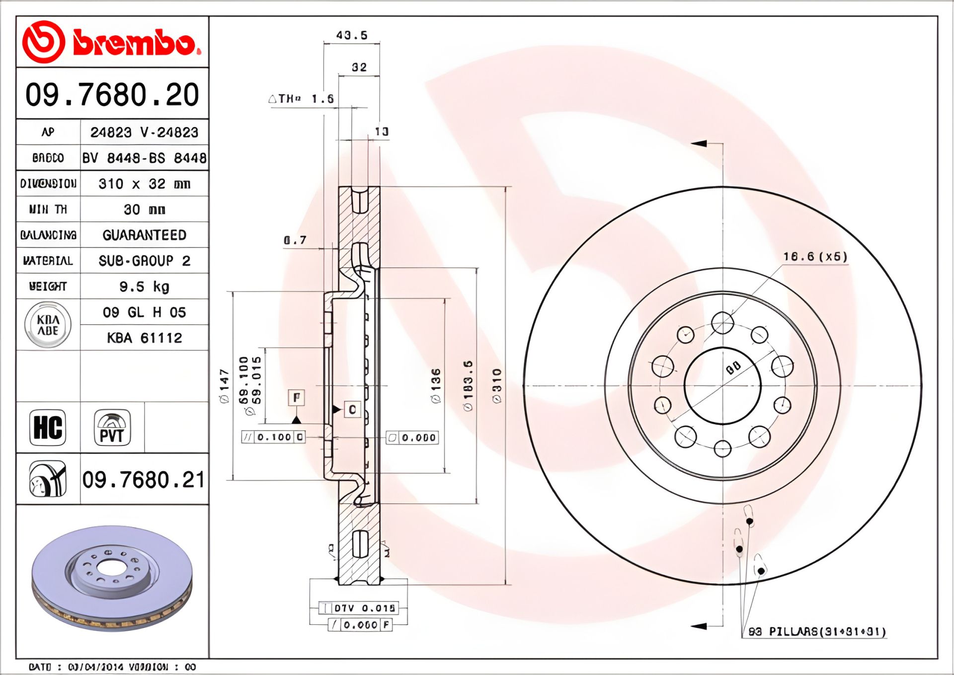 Гальмівний диск LANCIA PHEDRA, CITROËN C8, FIAT ULYSSE, BREMBO (09768021)
