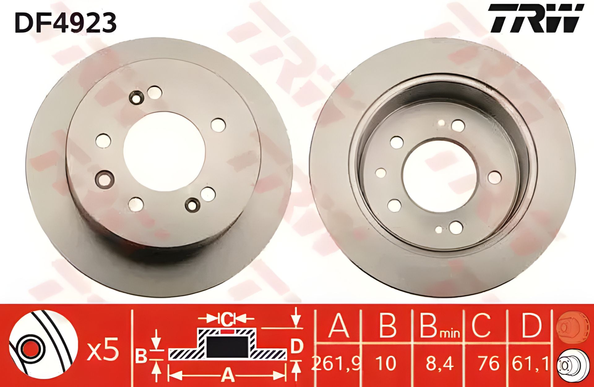 Задній гальмівний диск HYUNDAI ELANTRA, TRW (DF4923)