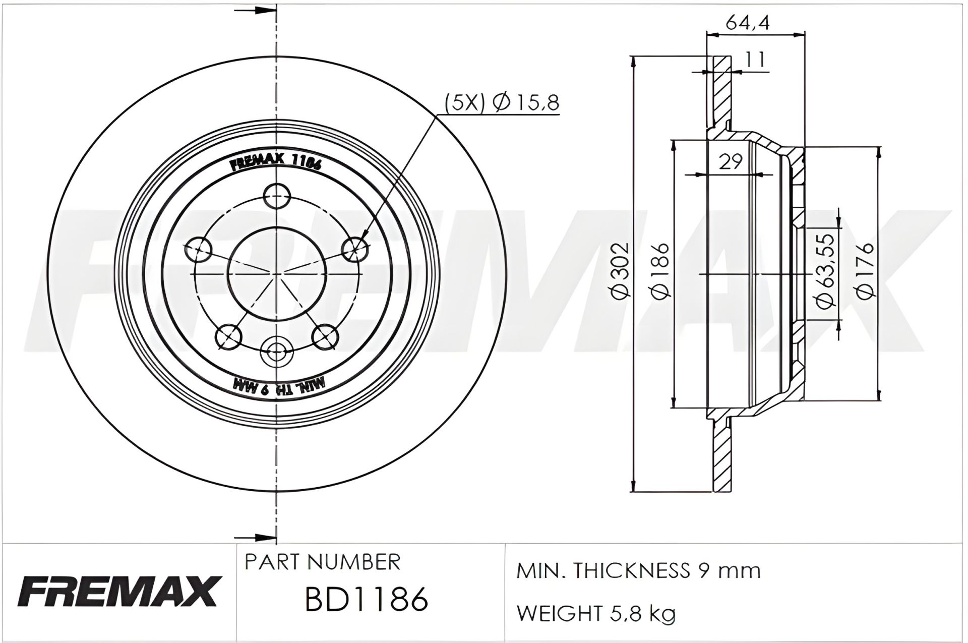 Гальмівний диск LAND ROVER, FREMAX (BD1186)