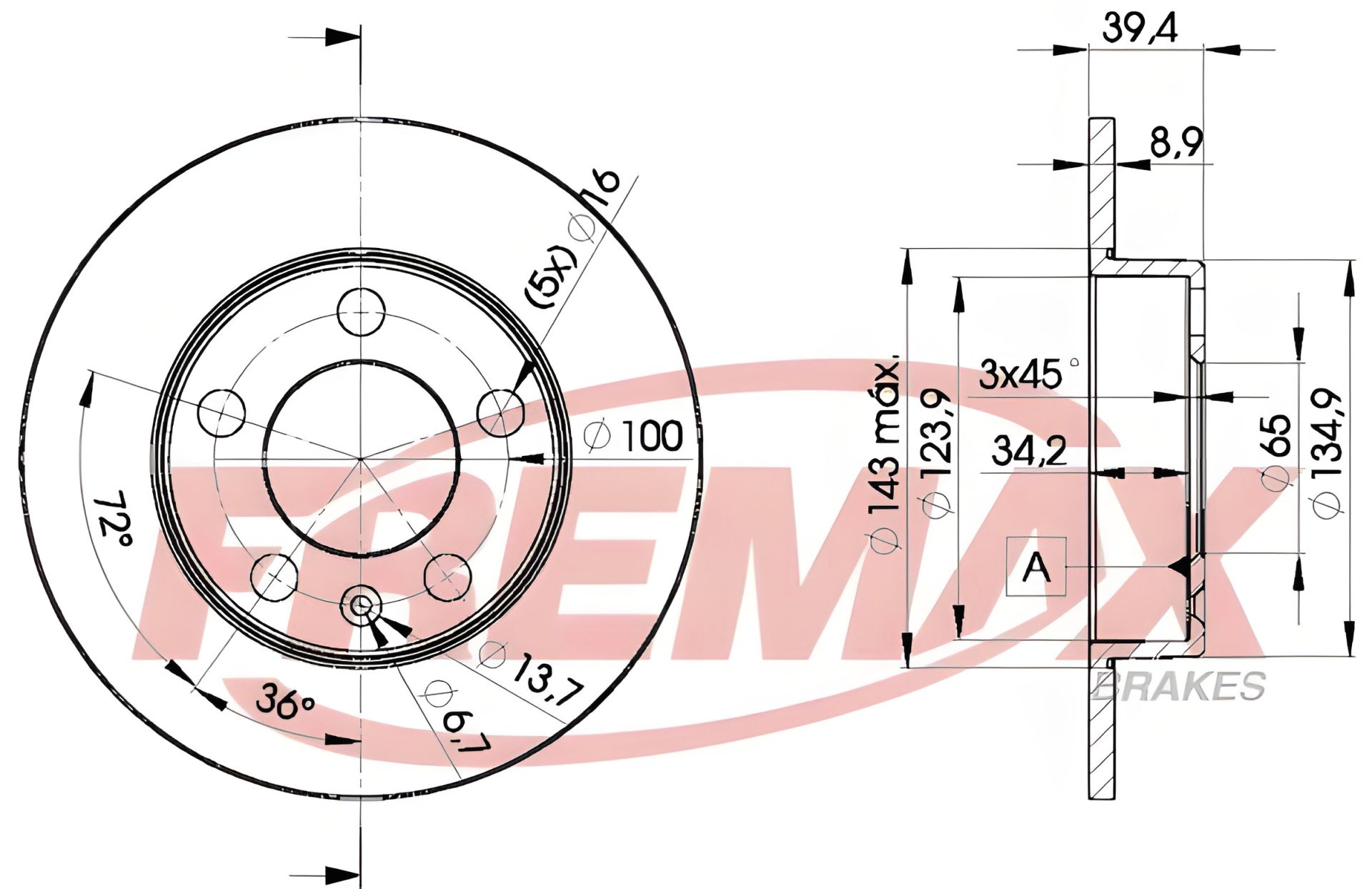 Гальмівний диск для SKODA FABIA, AUDI A1, VW TAIGO, FREMAX (BD5601)