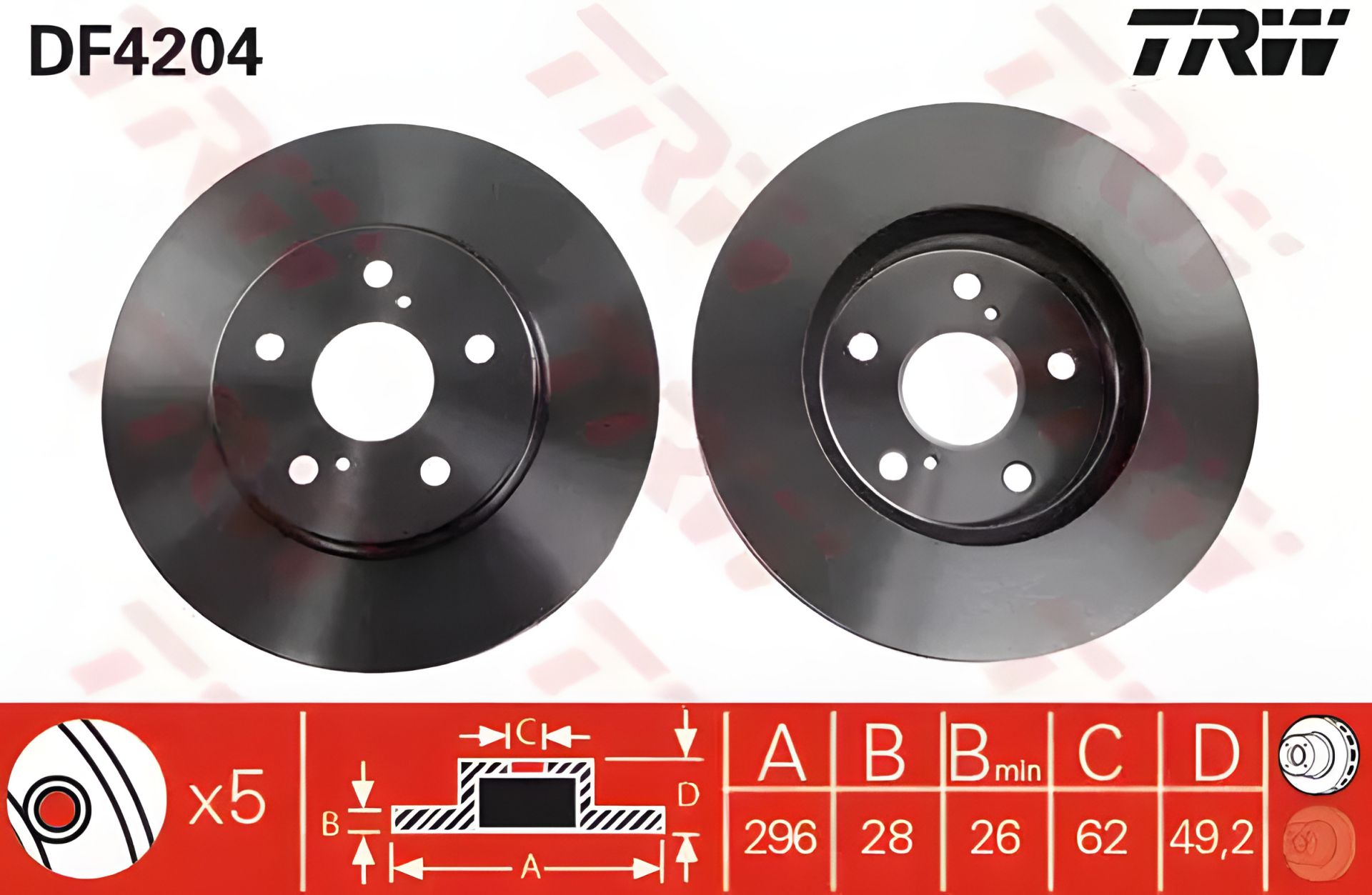 Передній вентильований гальмівний диск для TOYOTA CAMRY, TRW (DF4204)