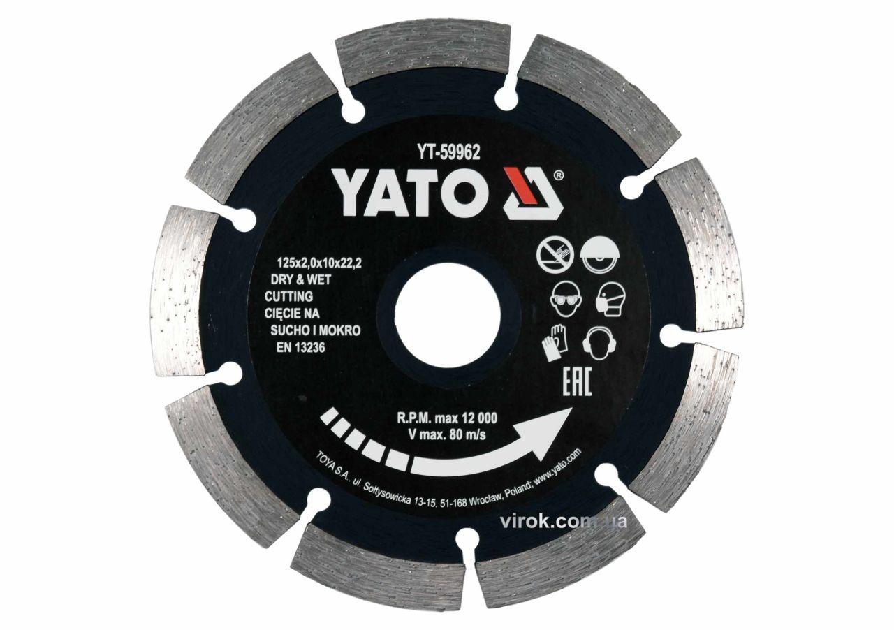 Диск відрізний алмазний по каменю та бетону YATO Ø=125x2x10x22.2 мм, в мокрому та сухому режимі