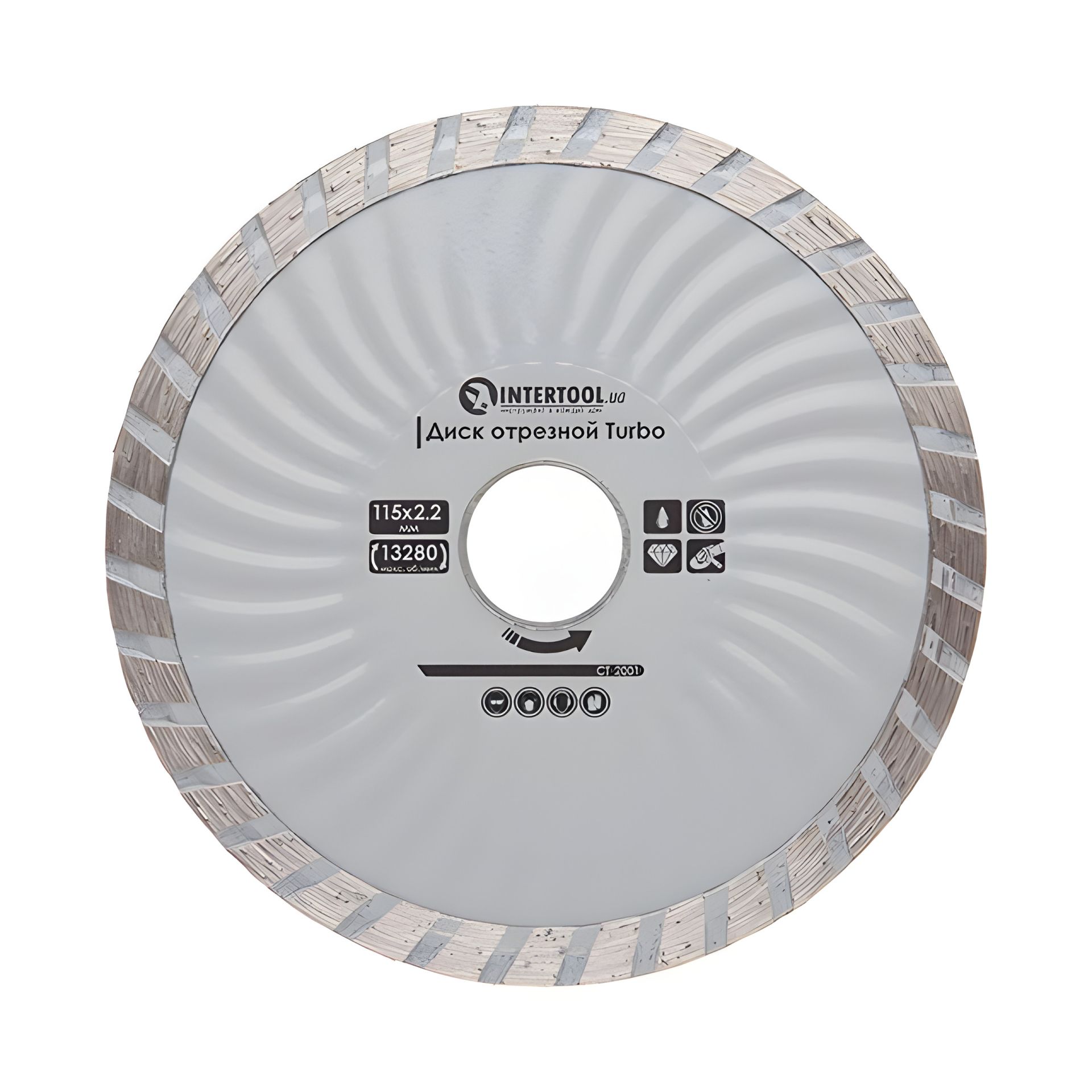 Диск відрізний алмазний Turbo, 115 мм, 16-18%, 13280 об/хв INTERTOOL CT-2001