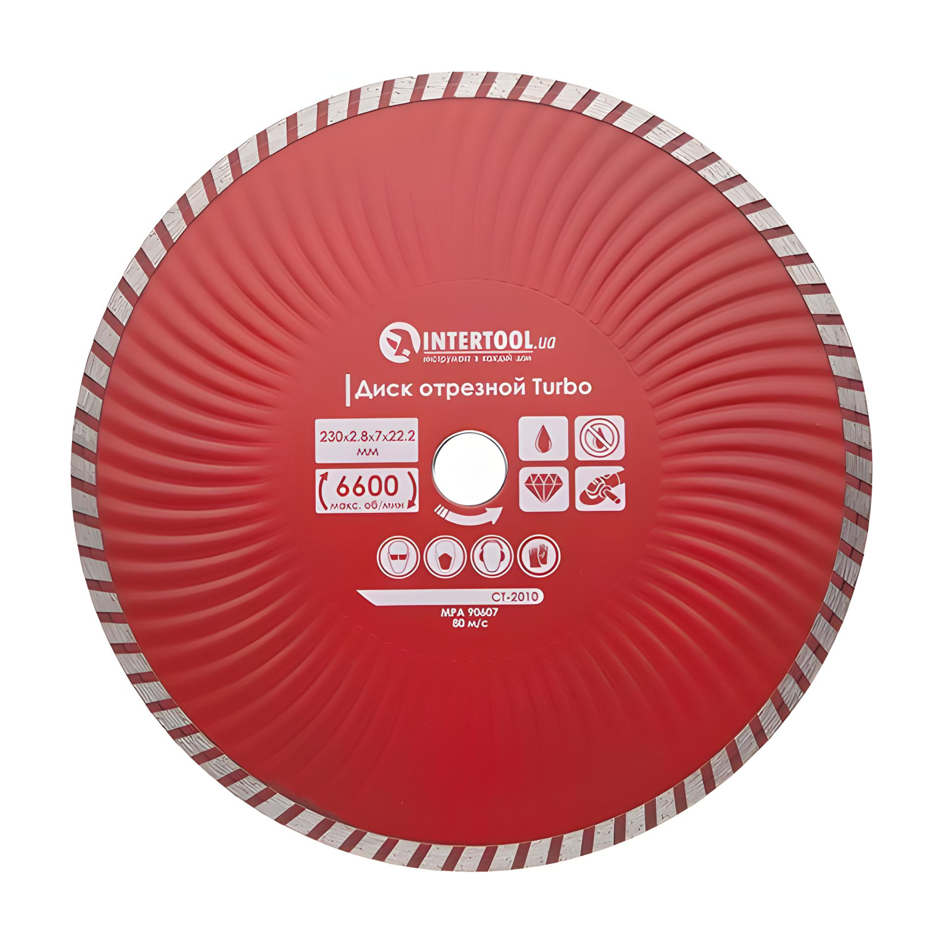 Алмазний диск відрізний Turbo, 230 мм, 22-24%, 6600 об/хв, INTERTOOL CT-2010