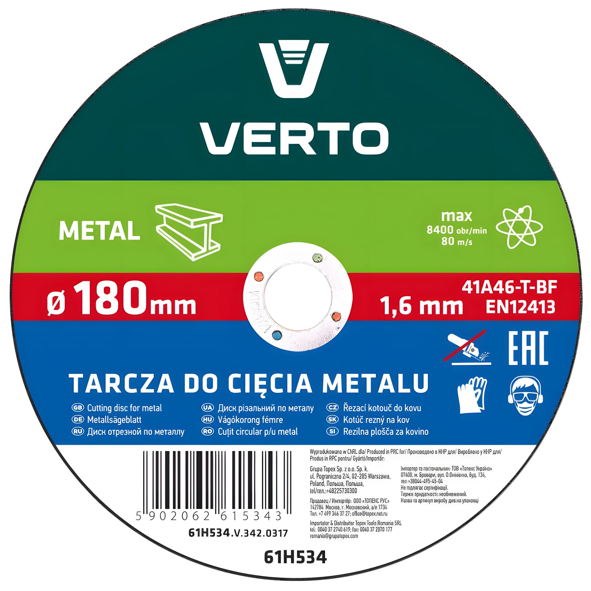 Відрізний диск по металу VERTO 61H534, 180 x 1.6 x 22 мм