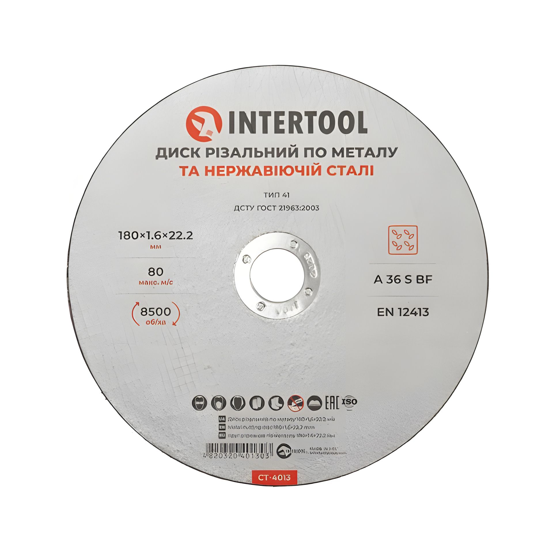 Відрізний диск по металу, 180×1,6×22,2 мм, 8500 об/хв INTERTOOL CT-4013