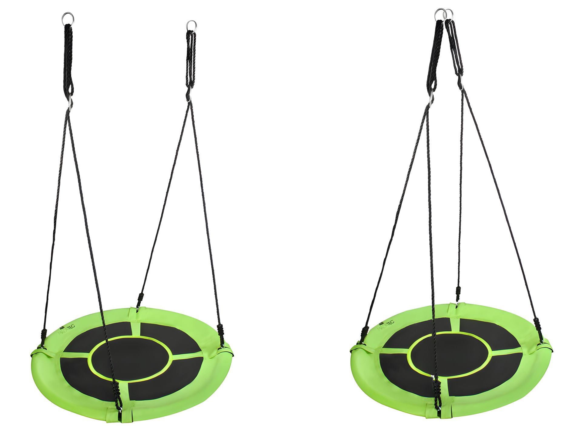 - РЕГУЛЮВАННЯ ВИСОТИ - гойдалки мають можливість регулювання мотузки, максимальна довжина становить 180 см. Завдяки цьому гойдалки підійдуть як маленьким (заниженими в зростанні), так і більш дорослим дітям. Це полегшує безпечний вхід і вихід. Міцні плетені мотузки товщиною 10 мм дозволяють не турбуватися про дітей, граючи на гойдалках.