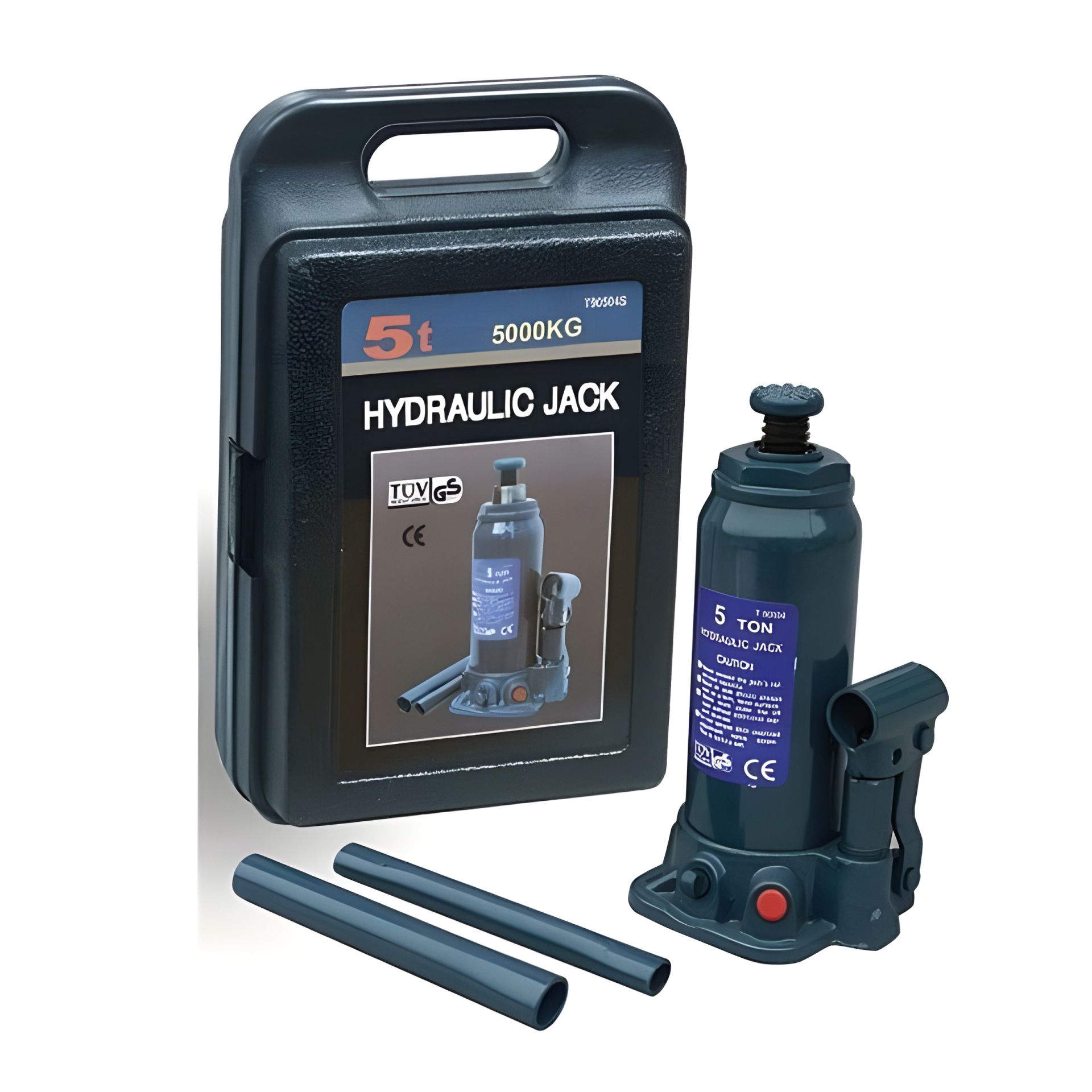 Домкрат пляшковий TORIN T90504S має вантажопідйомність 5 т, а максимальну висоту підйому 413 мм, що більш ніж достатньо для роботи не тільки з легковими автомобілями але і з джипами та мікроавтобусами Висота домкрата T90504S 216 мм заміни колеса чи виконання інших ремонтних робіт.