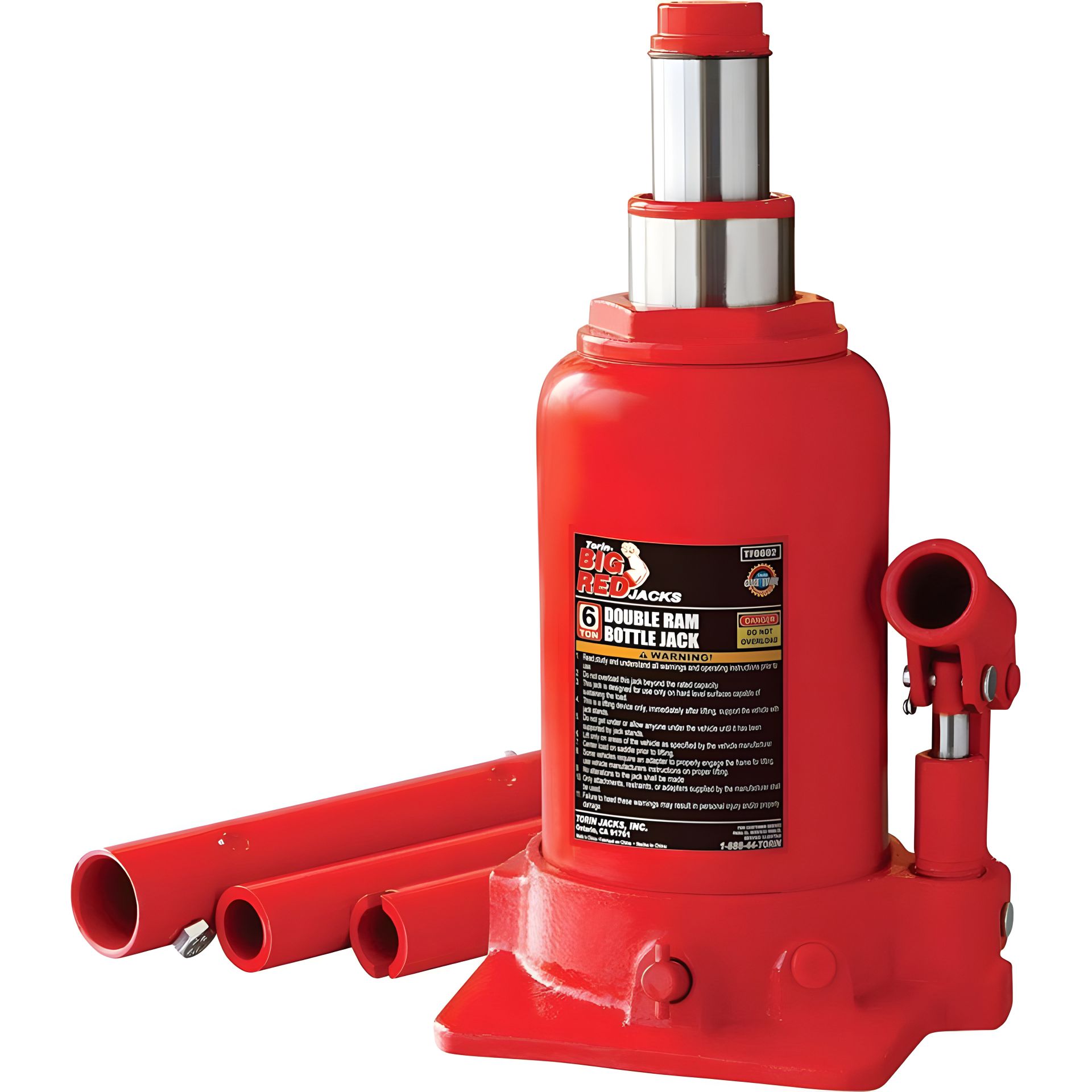 Домкрат пляшковий TORIN TF0602 має двоштокову систему, за рахунок чого здатний піднімати вантаж на більшу висоту. Надійна та стійка конструкція домкрата робить роботу безпечною, а довга ручка дозволить комфортно піднімати та опускати вантаж. Максимальна вантажопідйомність TORIN TF0602 – 6 тонн, а висота підйому 55 см, що робить його відмінним помічником при роботі не тільки з легковими авто, але й з джипами та мікроавтобусами.