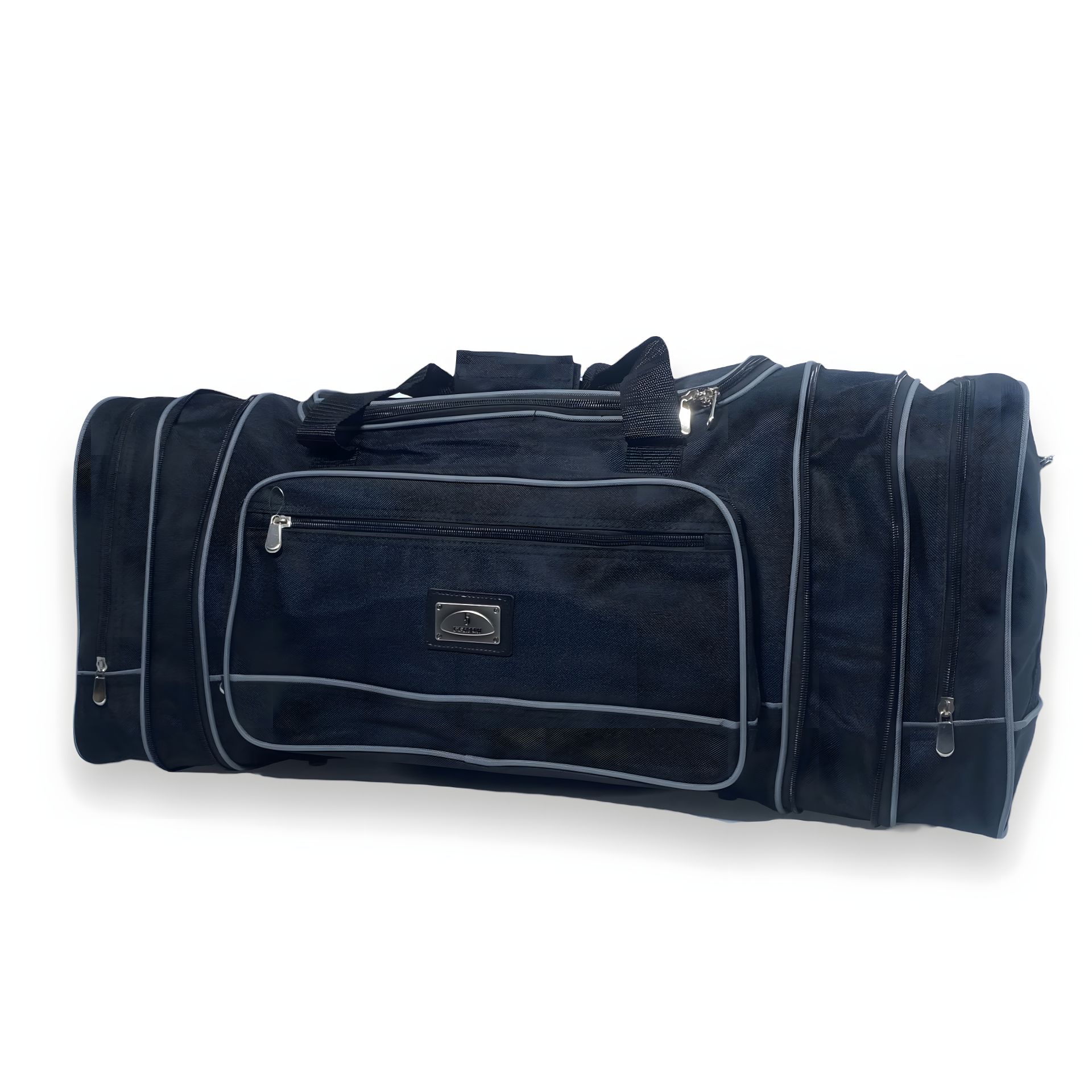 Дорожня сумка з розширенням довжини, одне відділення, бокові кишені, розмір: 60(70)*30*30 см, чорно-сіра