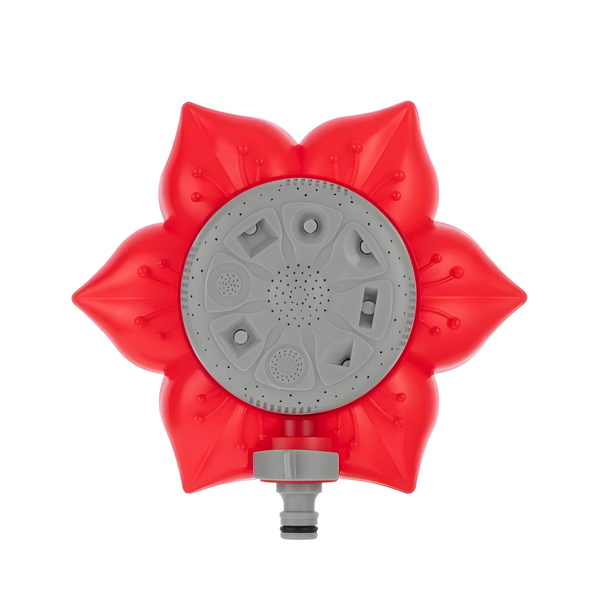 Розпилювач виконаний з ударостійкого ABS-пластику, що розміщується на стійкій широкій основі у вигляді квітки. Основа виготовлена з легкого та міцного поліпропілену, завдяки широкій базі, стійко стоїть на газоні та ґрунті. Розпилювач легко переносити з місця на місце та стаціонарно встановлювати на необхідній ділянці. Підключається до шланга за допомогою універсального адаптера 1/2".