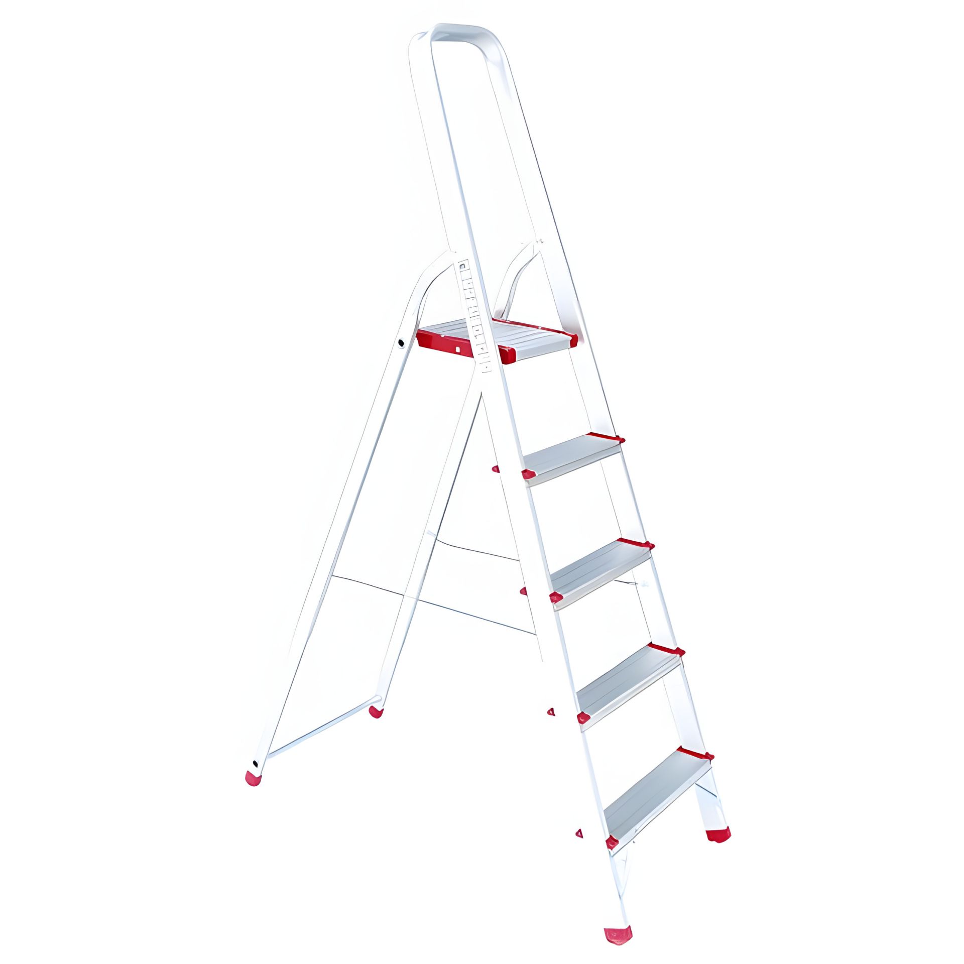 Алюмінієва драбина, 5 сходинок, висота: 1565 мм, висота до платформи: 1065 мм, 150 кг INTERTOOL LT-1005