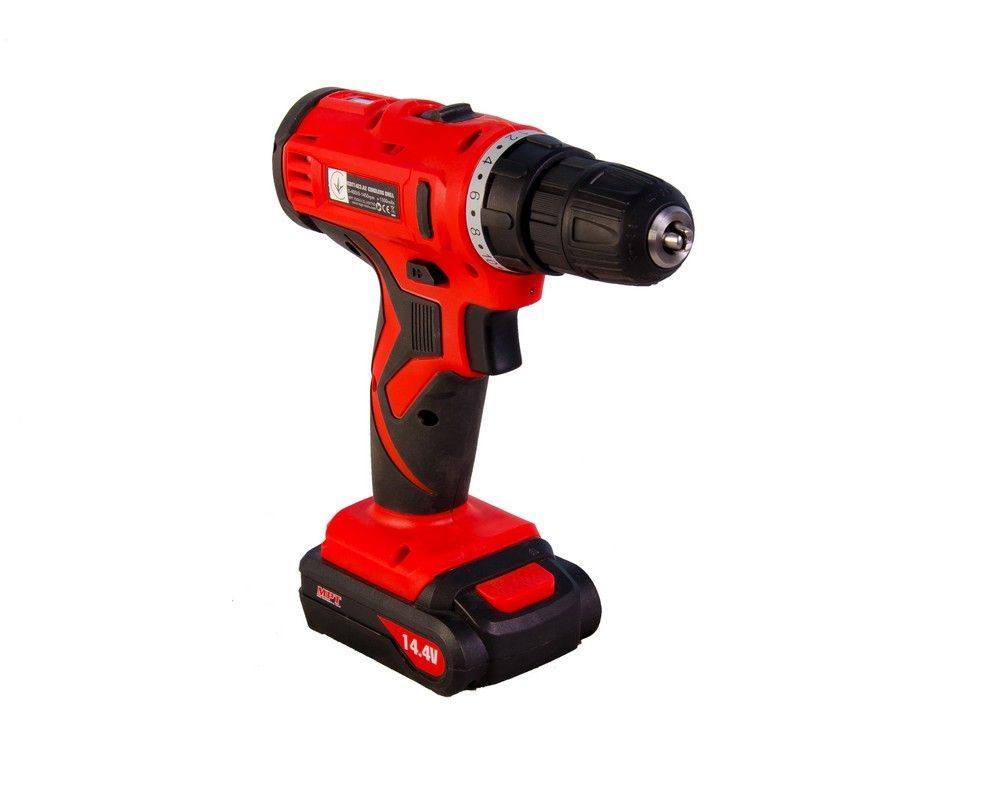 Акумуляторний дриль-шуруповерт на 14.4V - потужний та зручний інструмент для свердління та монтажних робіт. Оснащений двома Li-ion акумуляторами по 1.3 Ач, він забезпечує стабільну продуктивність і можливість працювати без перерв, швидко замінюючи батареї.