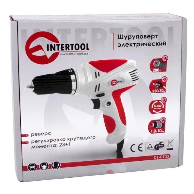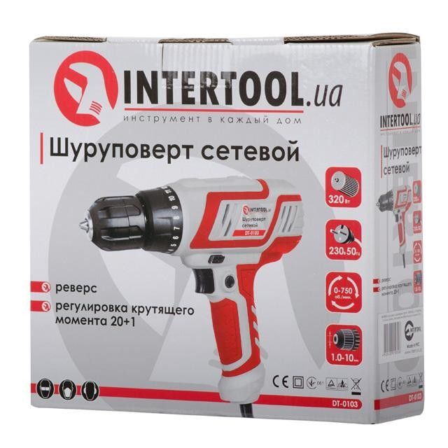 Електричний дриль-шурупокрут INTERTOOL DT-0103, 0,32 кВт, 0-750 об/хв, 0,8-10 мм, 10 Нм