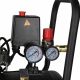 - Два манометри дозволяють контролювати тиск усередині ресивера та тиск на виході