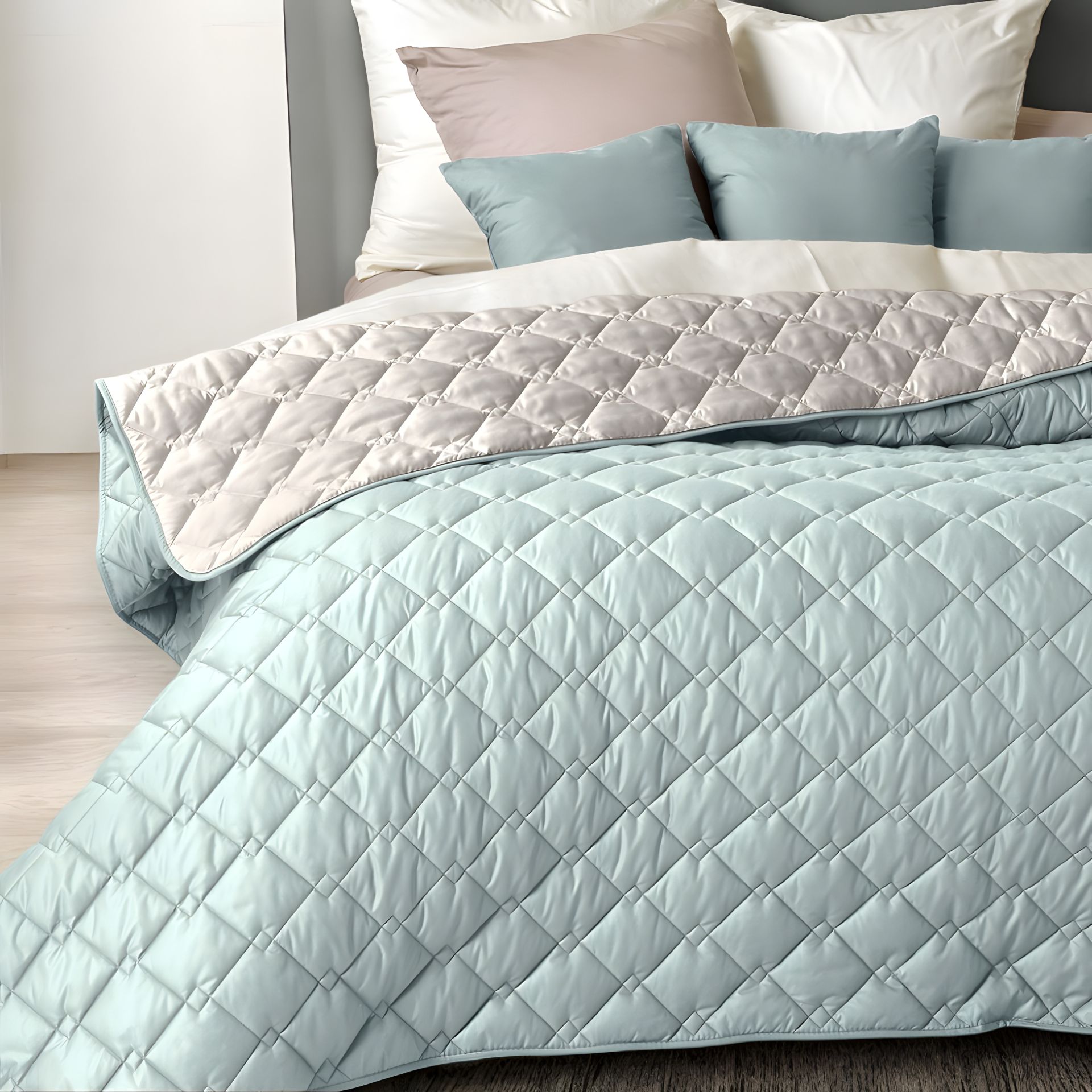 - Різноманітність кольорів та стильний вигляд: двобічна конструкція дозволяє змінювати інтер'єр одним рухом, підлаштовуючи спальню під настрій.