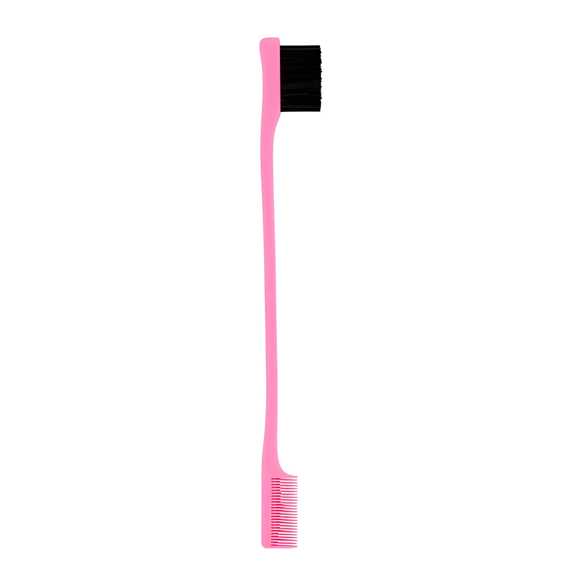 Гребінець двосторонній міні з пензликом рожевий для фарбування, укладання волосся та брів