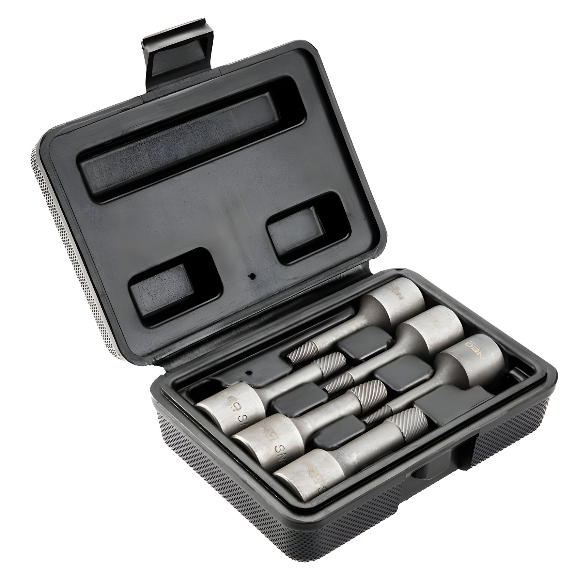 Екстрактори для Гвинтів 3/8', Набір 6 шт., Довжина 60 мм, для Гвинтів M5 (2 мм), M6 (3 мм), M8 (4 мм), M10-12 (6 мм), M14-16 (8 мм), M18-20 (10 мм), сталь CrMo6, Пластмасовий Кейс