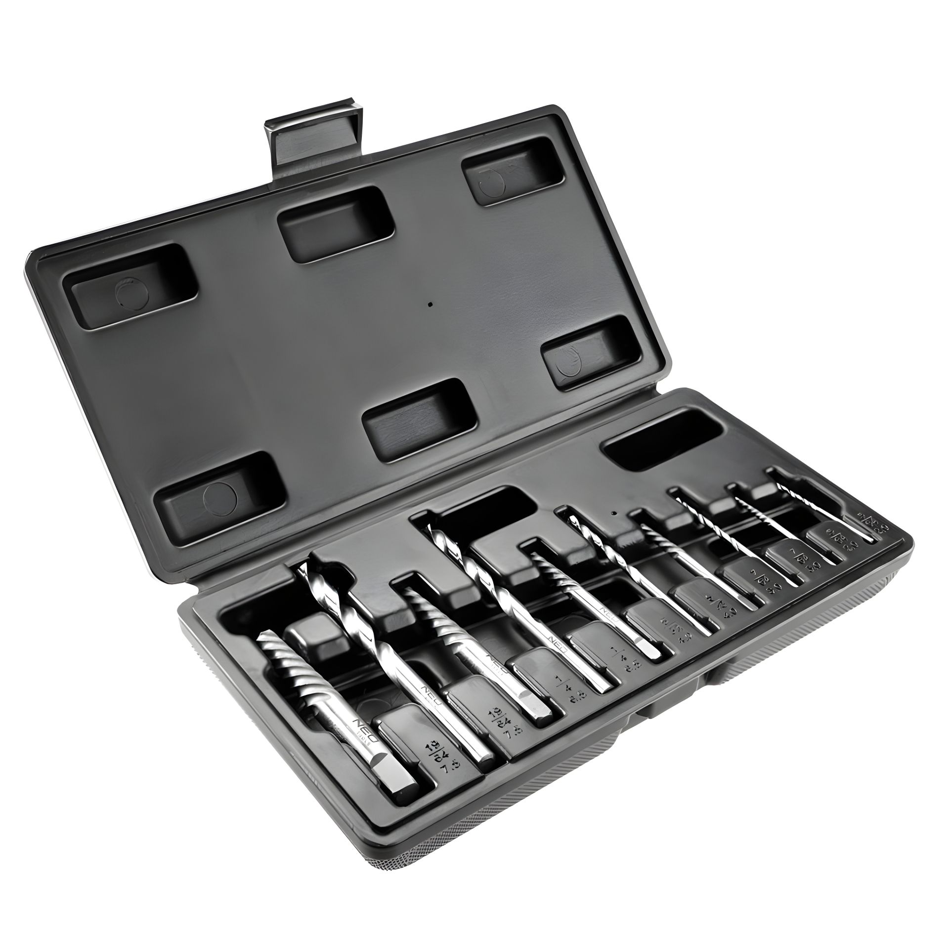 Екстрактори для зламаних гвинтів NEO з пілотними свердлами виготовлені з міцної хромомолібденової сталі, що забезпечує довгий термін служби. До складу набору входять 10 екстракторів із розмірами: 2, 3, 4, 6.5, 7.5 мм. Набір упакований у зручну пластмасову коробочку. Якість інструменту підтверджена сертифікатом TÜV та 25-річною гарантією виробника. Бренд NEO виправдовує очікування фахівців.