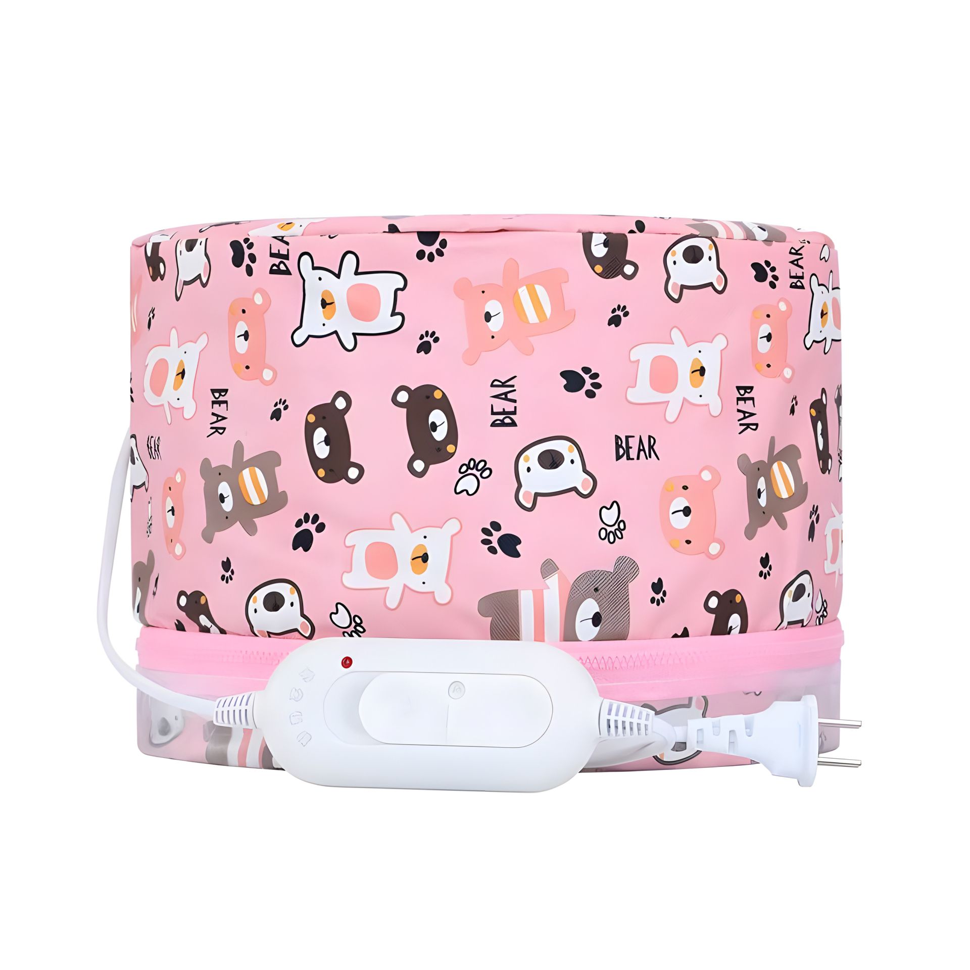 Електрична вінілова термошапка сушуар для волосся, рожева з ведмедиками