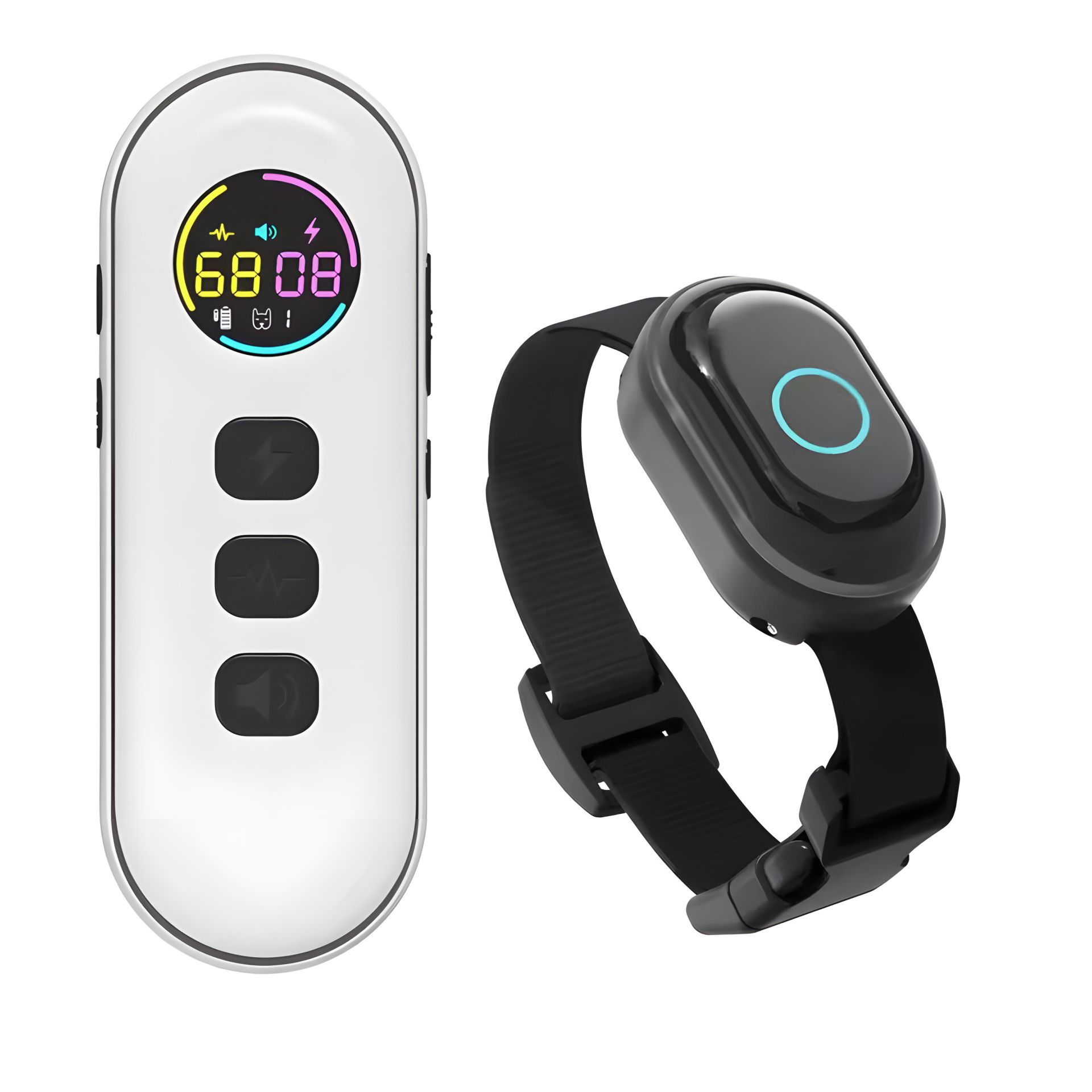 - Вологозахищений пульт з розмірами 130 х 45 х 20 мм, з кольоровим екраном. Можливе підключення до трьох нашийників до одного пульта управління.
