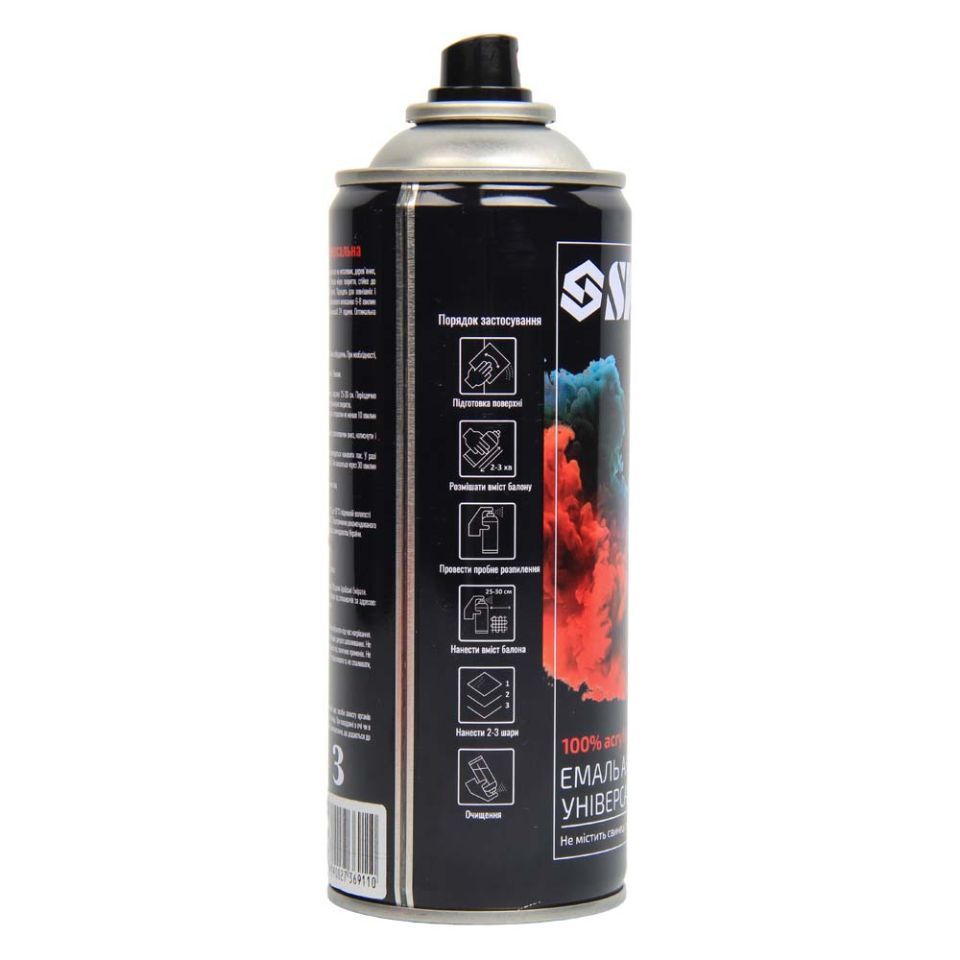 100% акрилова, швидковисихаюча аерозольна емаль з прекрасною адгезією до більшості поверхонь, таких як метал, бетон, дерево, скло, пластик, гіпсокартон та інші матеріали.