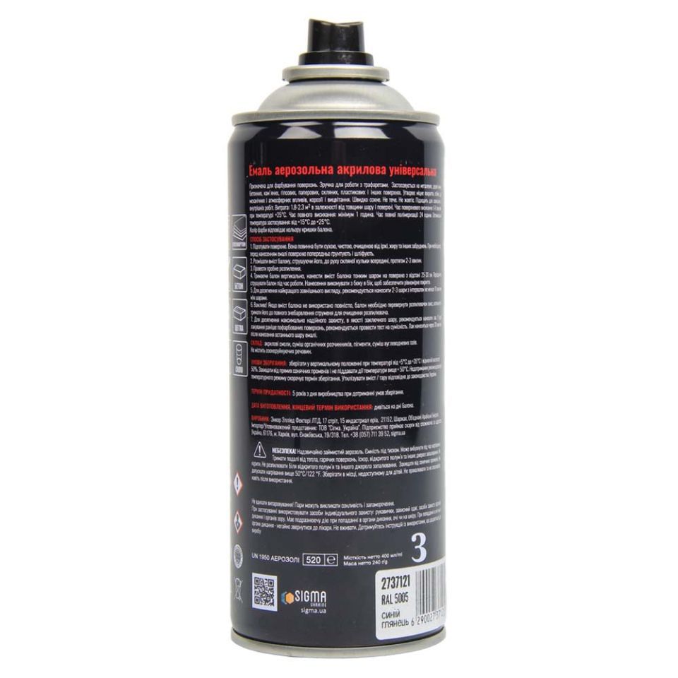 Емаль аерозольна акрилова 400мл RAL 5005 синій глянець SIGMA (2737121)