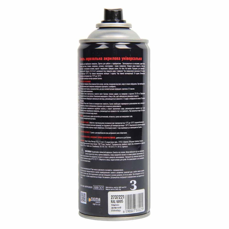 400мл RAL 6005 темно-зелений глянець SIGMA Емаль аерозольна акрилова (2737221)