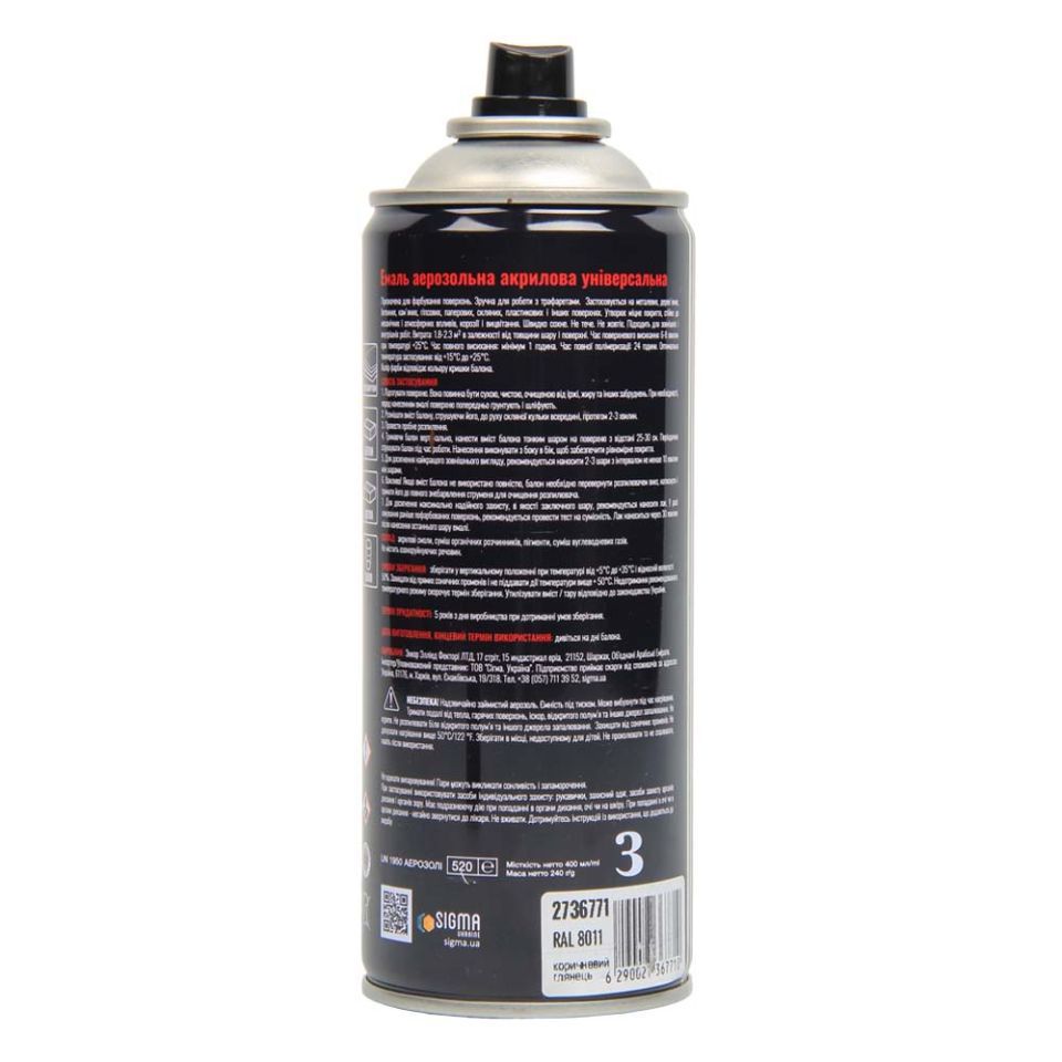 Аерозольна акрилова емаль 400мл RAL 8011 коричневий глянець SIGMA 2736771