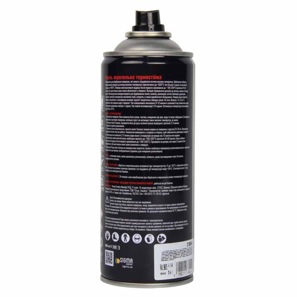 Емаль аерозольна акрилова термостійка +600°C 400мл RAL 9005 чорний мат SIGMA (2736041)