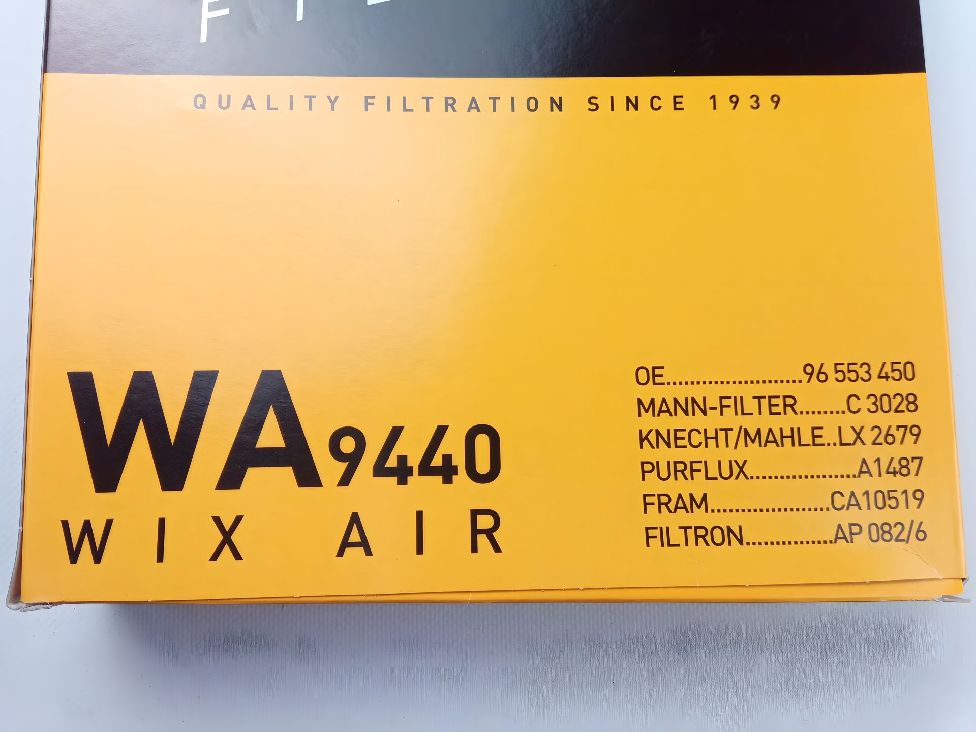 Фільтр повітряний Lacetti, WIX (WA9440) Бренд: WIX Тип: панельний Довжина: 332 мм Ширина: 109 мм Висота: 40.5 мм Країна виробник: Польща