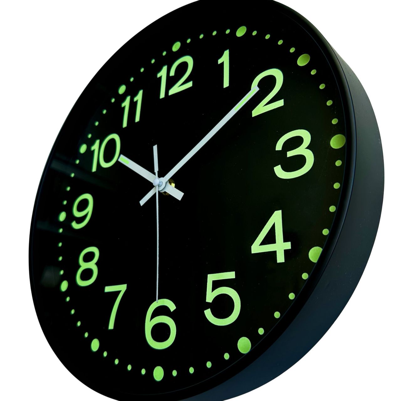 Фосфорний настінний годинник Безшумний Світиться Круглий (30 см) Timelike™ Ph-01-B чорний