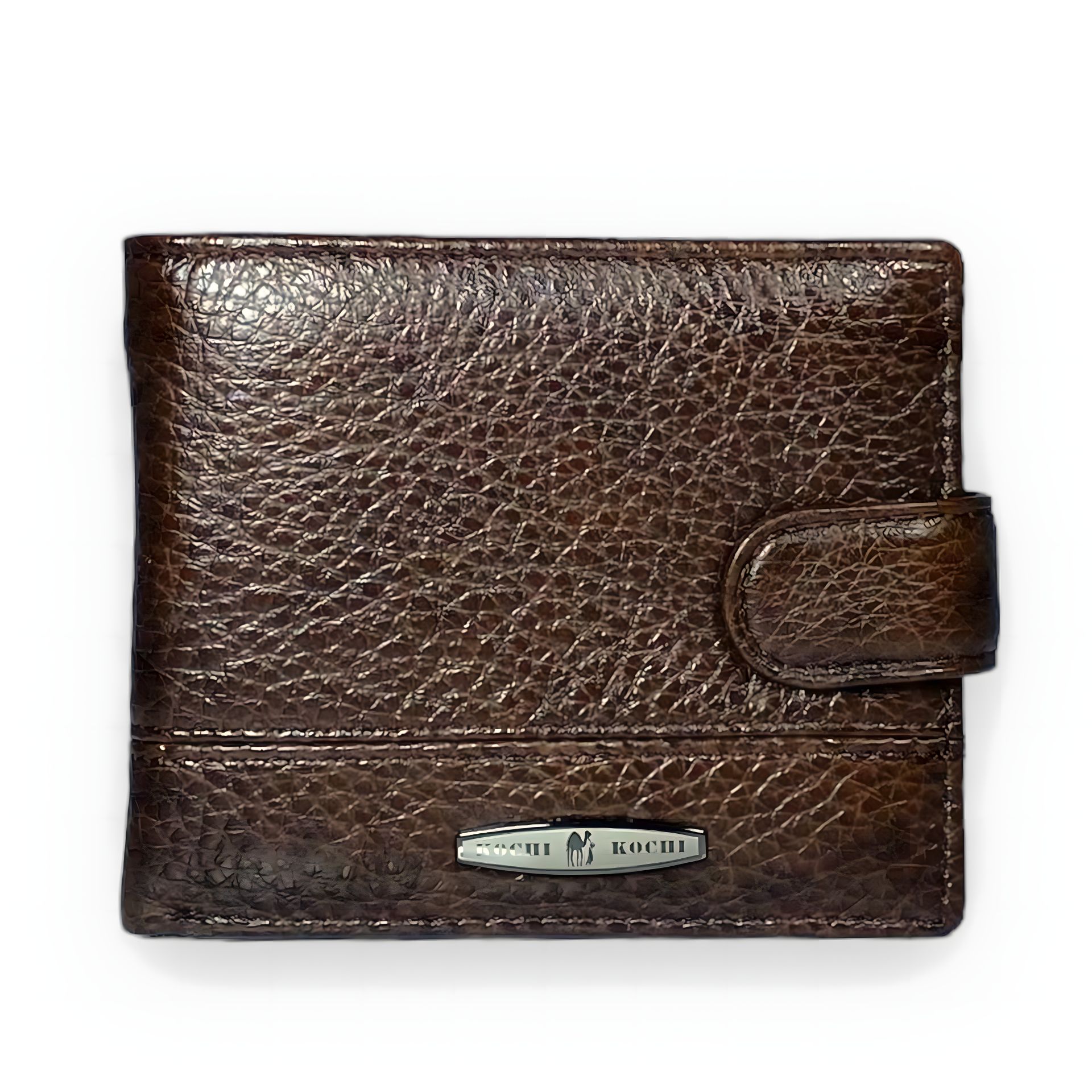 Гаманець чоловічий Kochi, два відділення для купюр, п'ять відділень для карток, монетниця, застібка-кнопка, розмір: 12*10*3 см, коричневий.