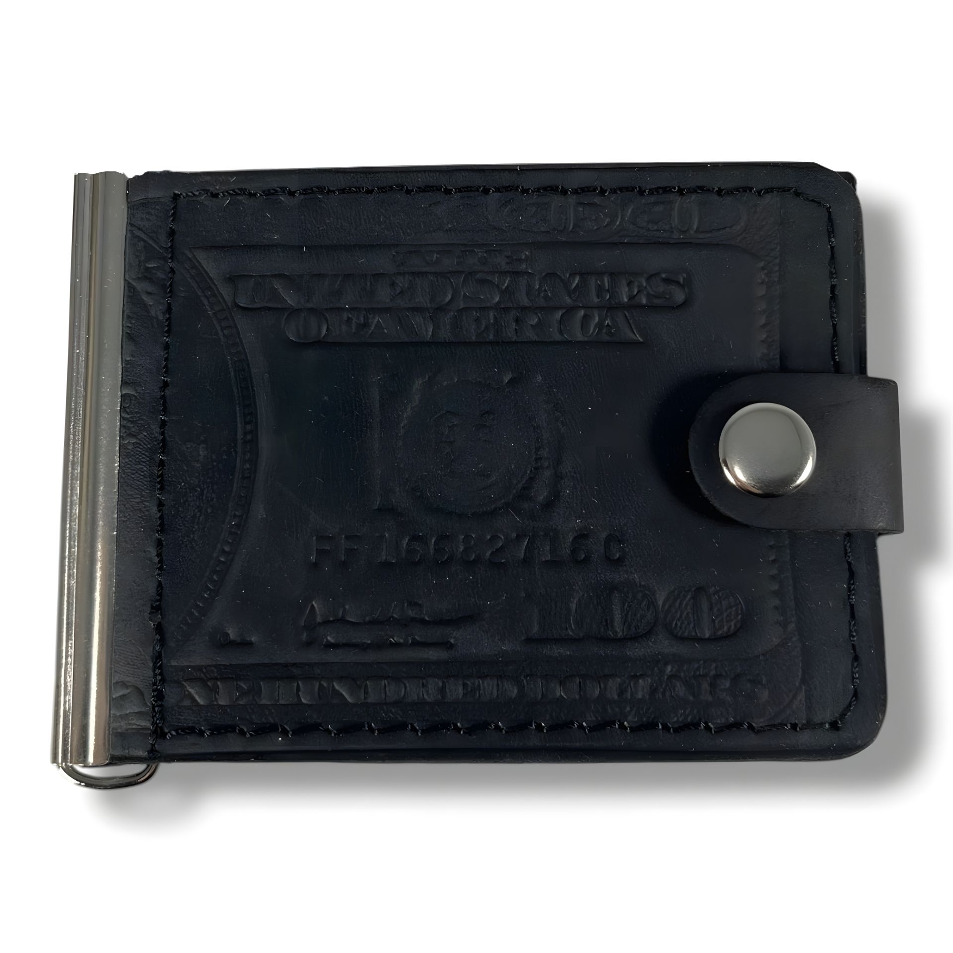 Затискач гаманець для купюр BagWay, ручна екошкіра, робота чорний з тисненням