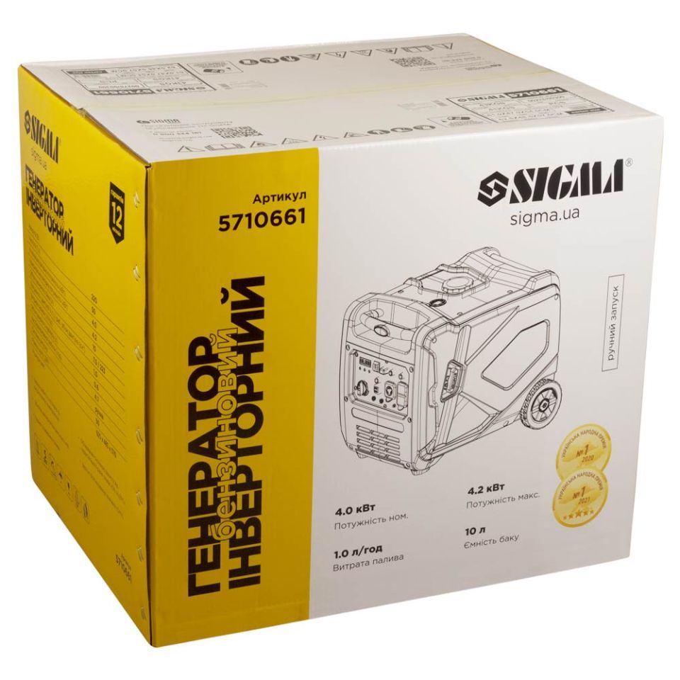 Генератор інверторний бензиновий 220В 4.0/4.2кВт 50дБ 4-х тактний ручний запуск SIGMA 5710661