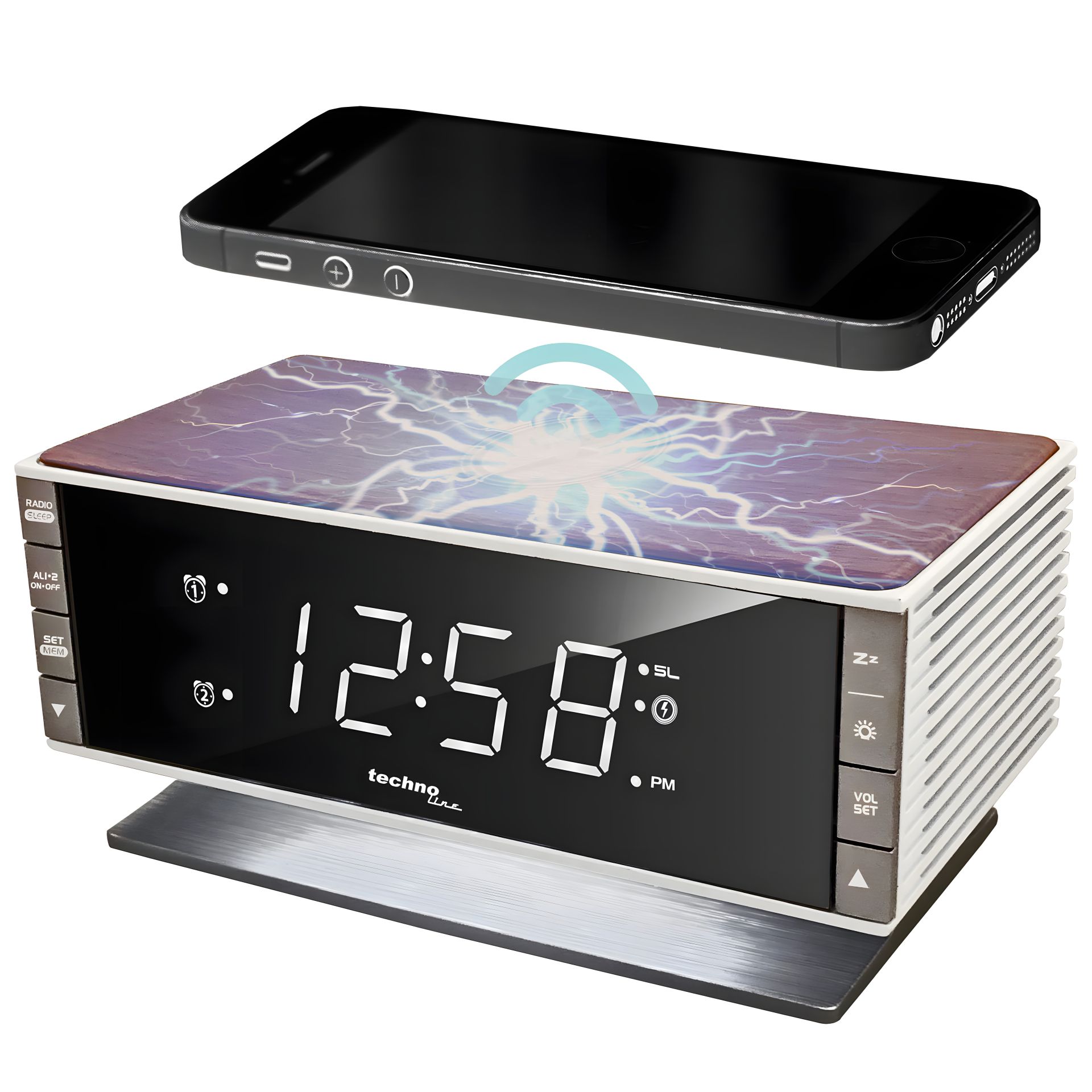 Годинник настільний з радіо Technoline WT487 - це багатофункціональний пристрій, здатний заряджати ваші мобільні девайси за допомогою безпровідної зарядки для смартфонів з підтримкою технології Qi чи вбудованого USB входу (5V 1A). Вбудоване радіо має пам'ять на 20 каналів та може працювати постійно, з таймером сну або замінити стандартні звуки будильника.