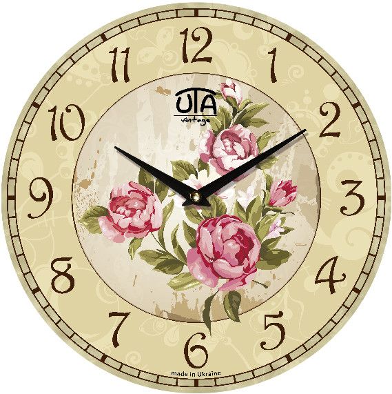 Настінний годинник UTA "Vintage" (33 см) 007 ВП - Вони мають круглу форму, діаметр 33 см, товщина 2,7 см, вага 0,6 кг.