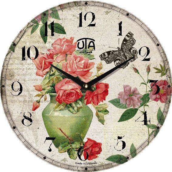 Настінний годинник UTA "Vintage" (33 см) 034 ВП - Вони мають круглу форму, діаметр 33 см, товщина 2,7 см, вага 0,6 кг.
