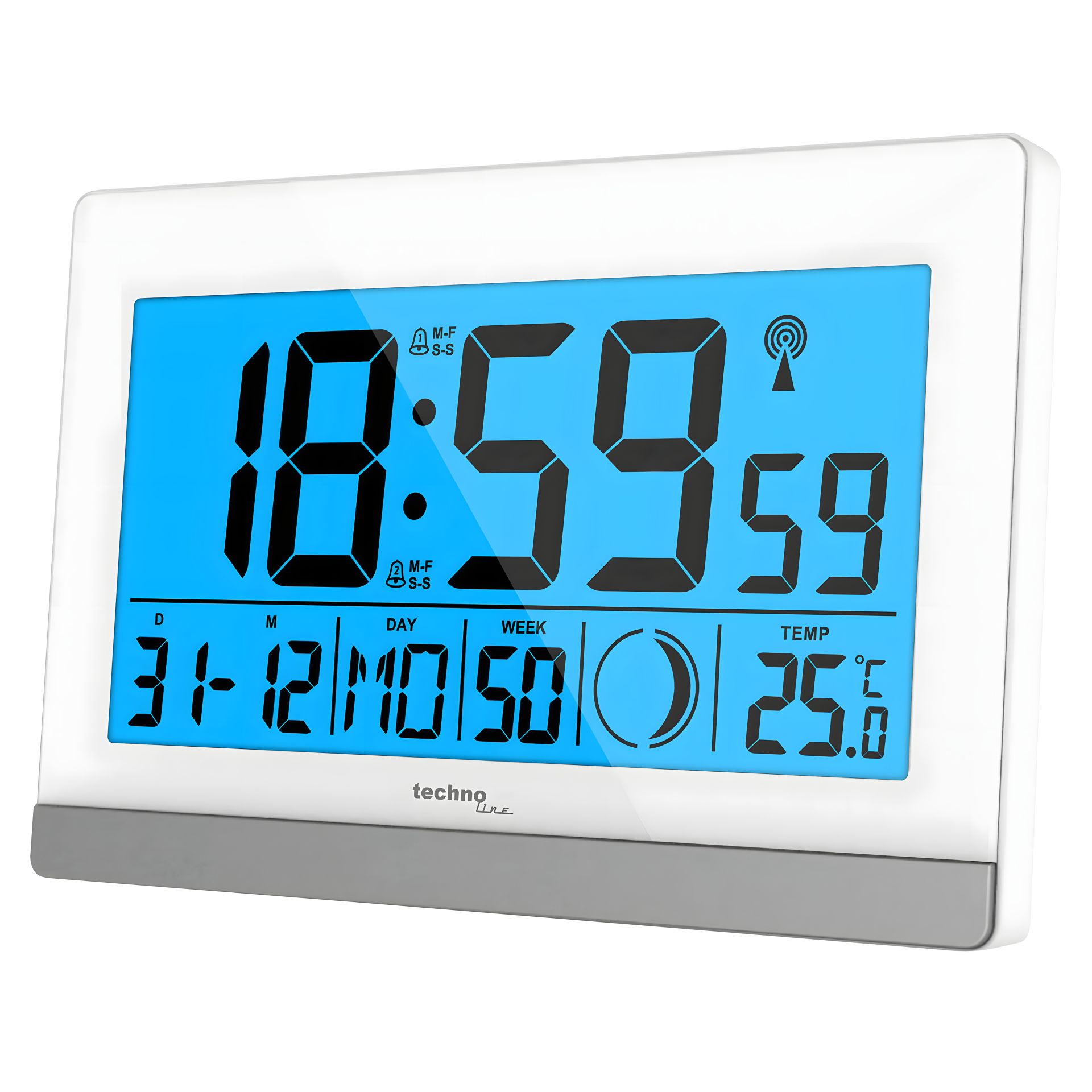 Більше ніж просто годинник з підсвічуванням. Technoline WS8056 White/Silver має вбудований таймер, два будильника окремим налаштуванням і функцією "Snooze", термометр і календар з відображенням не тільки дати, але й номера тижня в році, а також годинник відображає фази луни. Дисплей годинника має яскраве світлодіодне блактине підсвічування. Підсвічування, таймер і функція повтору будильника активуються за допомогою сенсорної панелі на верхній частині корпусу годинника. Таким чином, дана модель знайде своє місце і на кухні, і у вітальні і безумовно в офісі. Точність годинника коригується радіосигналом точного часу, а в разі перебоїв прийому радіосигналу час може бути налаштований вручну.