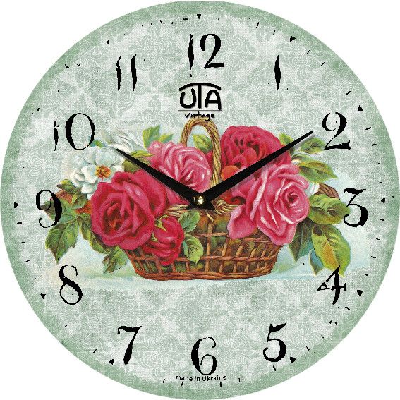 Настінний годинник UTA "Vintage" (33 см) 045 ВП "Прованс" - Вони мають круглу форму, діаметр 33 см, товщина 2,7 см, вага 0,6 кг.