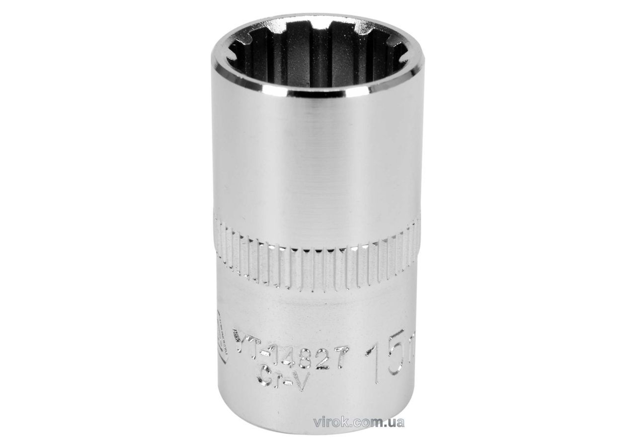 Головка торцева "Spline": квадрат 1/2", M15, l = 38 мм, CrV [Блістер] YaTo YT-14827