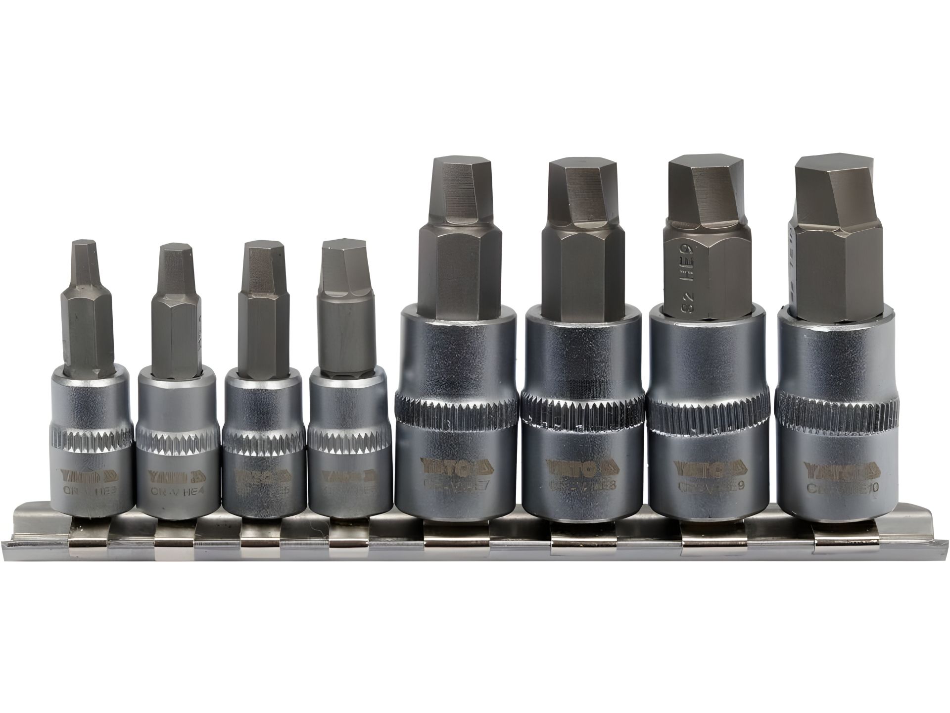 HEX насадки, спіральні для видалення гвинтів, комплект 8 шт до квадр. 1/4" та 3/8", Yato YT-04580