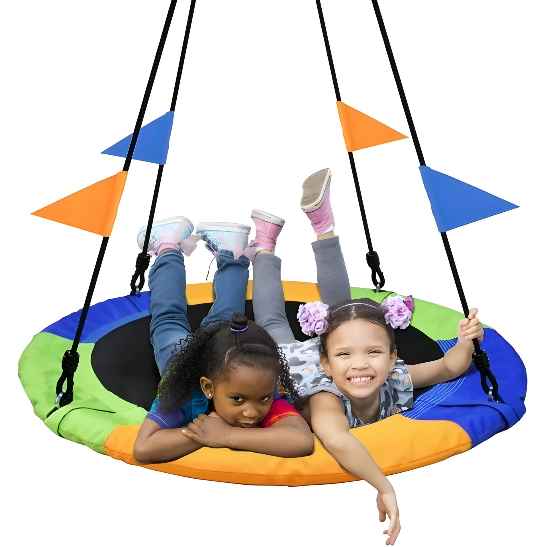 Гойдалка гніздо має широке кругле сидіння, виготовлене з безпечних і міцних матеріалів. Гойдалка виготовлена з тканини Оксфорд, що гарантує безпечну гру. Вантажність до 120 кг можлива завдяки використанню плетених канатів завтовшки 10 мм. Це гарантує безпеку та дає змогу навіть дорослим пережити хвилини радості. Це ідеальне рішення для великої родини. Його розмір і форма роблять його придатним для кількох людей.
