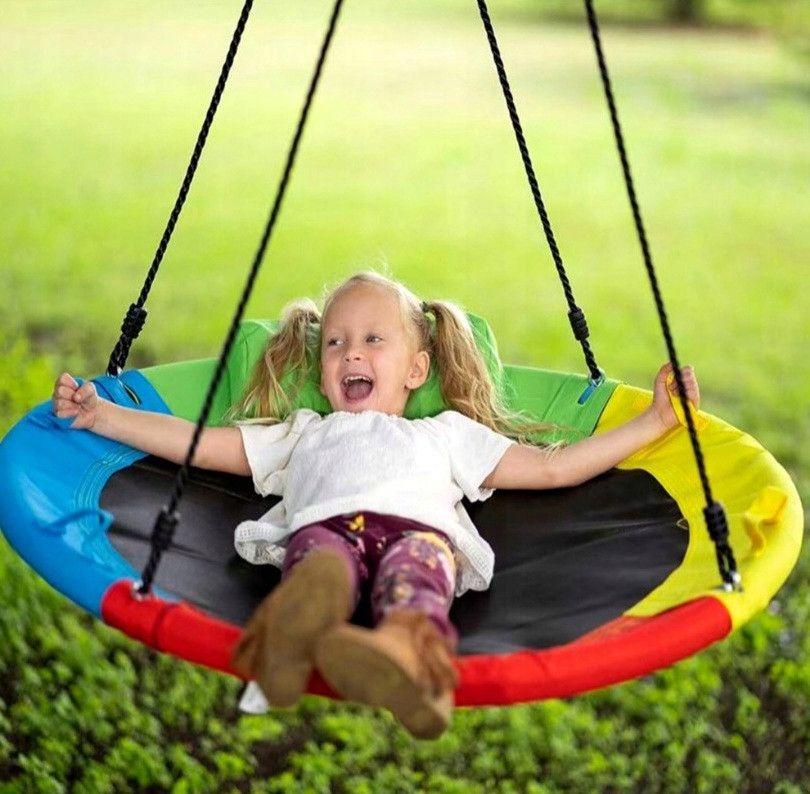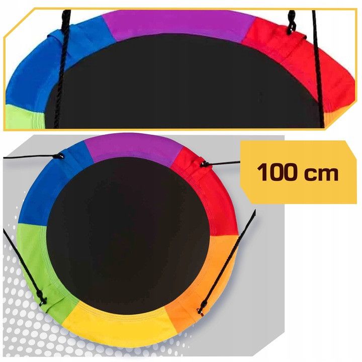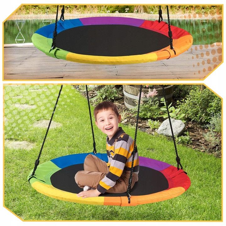 Гойдалка гніздо має широке кругле сидіння, виготовлене з безпечних і міцних матеріалів. Гойдалка виготовлена з тканини Оксфорд, що гарантує безпечну гру. Вантажність до 150 кг можлива завдяки використанню плетених канатів завтовшки 10 мм. Це гарантує безпеку та дає змогу навіть дорослим пережити хвилини радості. Це ідеальне рішення для великої родини. Його розмір і форма роблять його придатним для кількох людей.