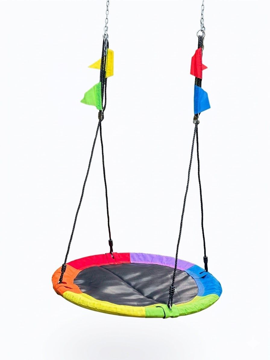 Дитяча підвісна гойдалка гніздо лелеки з прапорцями 100 см 150кг