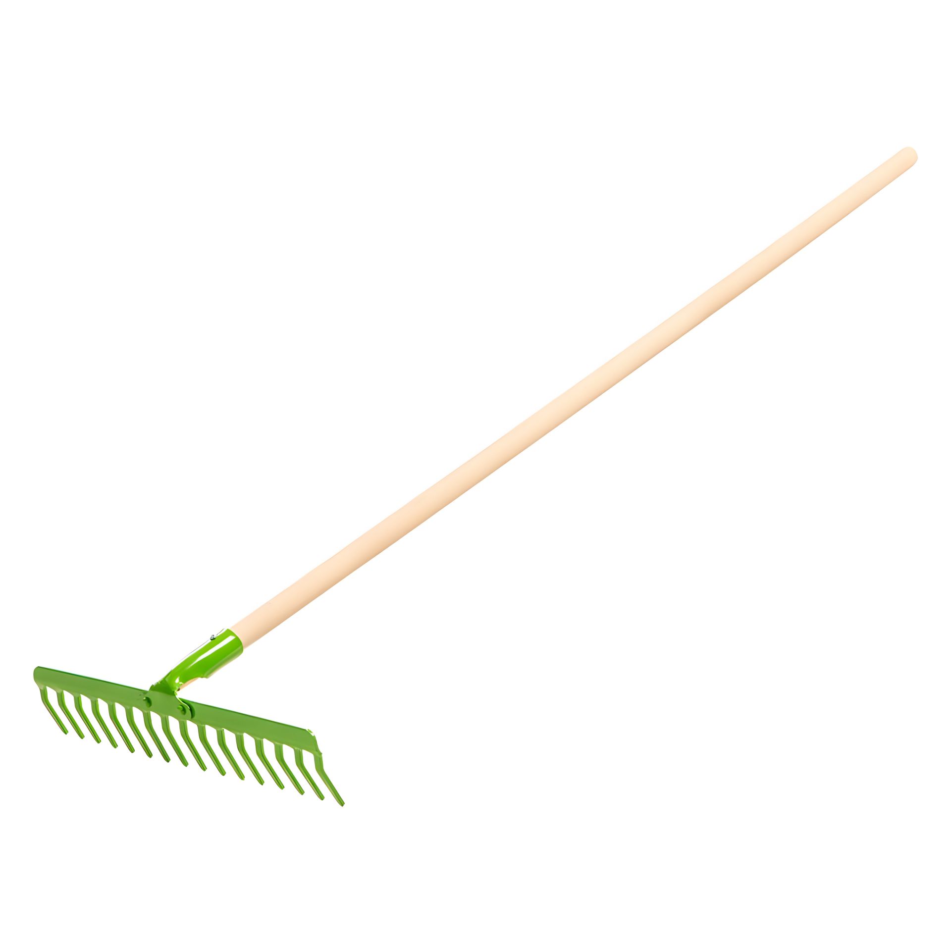 Прямі універсальні граблі, 16 зубів, головка на заклепках, дерев'яний держак VERTO 15G050