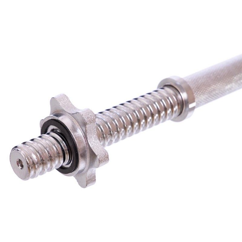 Для виготовлення цього грифу використовується хромований метал вищої якості, стійкий до механічних пошкоджень та іржавіння. Візуально він є прут заданого діаметра, що складається з області захоплення (рукояті) і посадкових втулок з різьбленням, призначених для вагових млинців. Їх фіксація здійснюється за допомогою гайкових замків (гайок Вейдера) – одного з найнадійніших способів запобігти зісковзування млинців з грифу. Щоб долоні атлета не ковзали по рукояті, на неї нанесена ромбоподібна насічка, що забезпечує надійний хват.