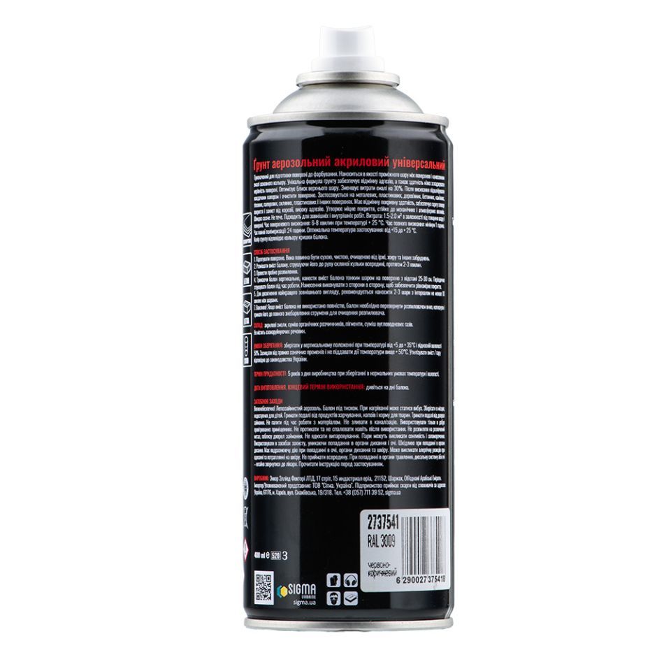 Грунт аерозольний акриловий 400мл RAL 3009 (оксидно-червоний) SIGMA 2737541